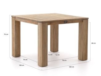 • Teakhouten tafel: De stevige teakhouten tafel is bestand tegen alle weersomstandigheden en biedt jarenlang plezier. Geen zorgen over splinters, want het is netjes afgewerkt.