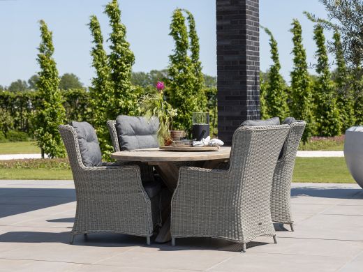 Ontdek de charme van de Intenso Milano/ROUGH-X dining tuinset, een prachtige combinatie van stijl en comfort voor je tuin! Met zijn robuuste teakhouten tafel en comfortabele wicker stoelen, biedt deze set een uitnodigende plek om te genieten van lange zomerse avonden. Het teakhout is bestand tegen alle weersomstandigheden, waardoor je jarenlang plezier hebt van deze set. De handgevlochten wicker stoelen zijn niet alleen strak afgewerkt, maar ook licht van gewicht, waardoor je ze eenvoudig kunt verplaatsen. Deze set is inclusief kussens, zodat je direct kunt genieten van een comfortabele zitervaring. Perfect voor een gezellige barbecue of een ontspannen ontbijt in de ochtendzon. Zet de parasol op en laat die zon maar komen!