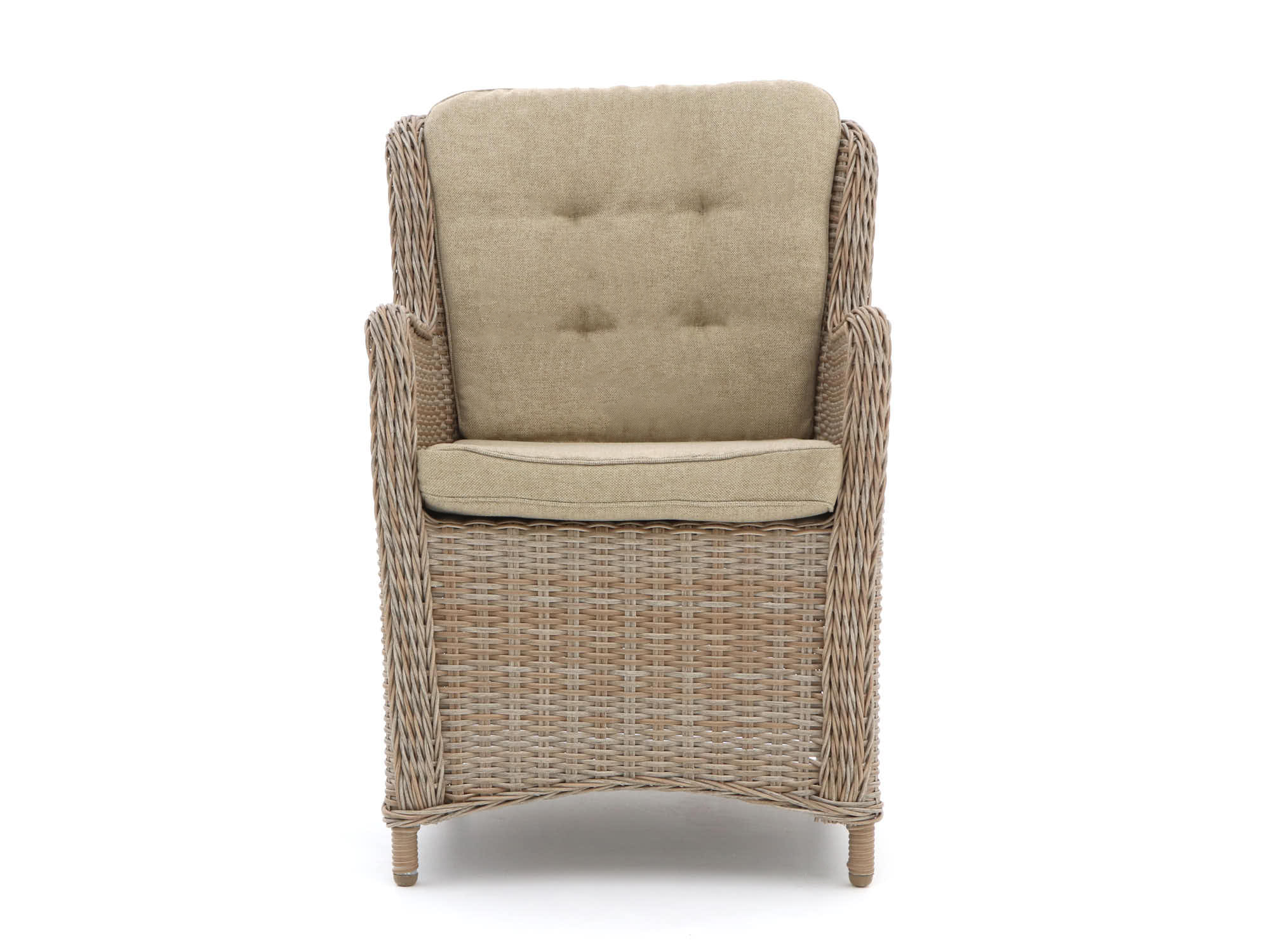 Handgevlochten wicker stoelen: De stoelen zijn strak afgewerkt en vochtbestendig, waardoor ze netjes blijven zonder loshangende draden. Ze zijn ook licht van gewicht, dus makkelijk te verplaatsen.