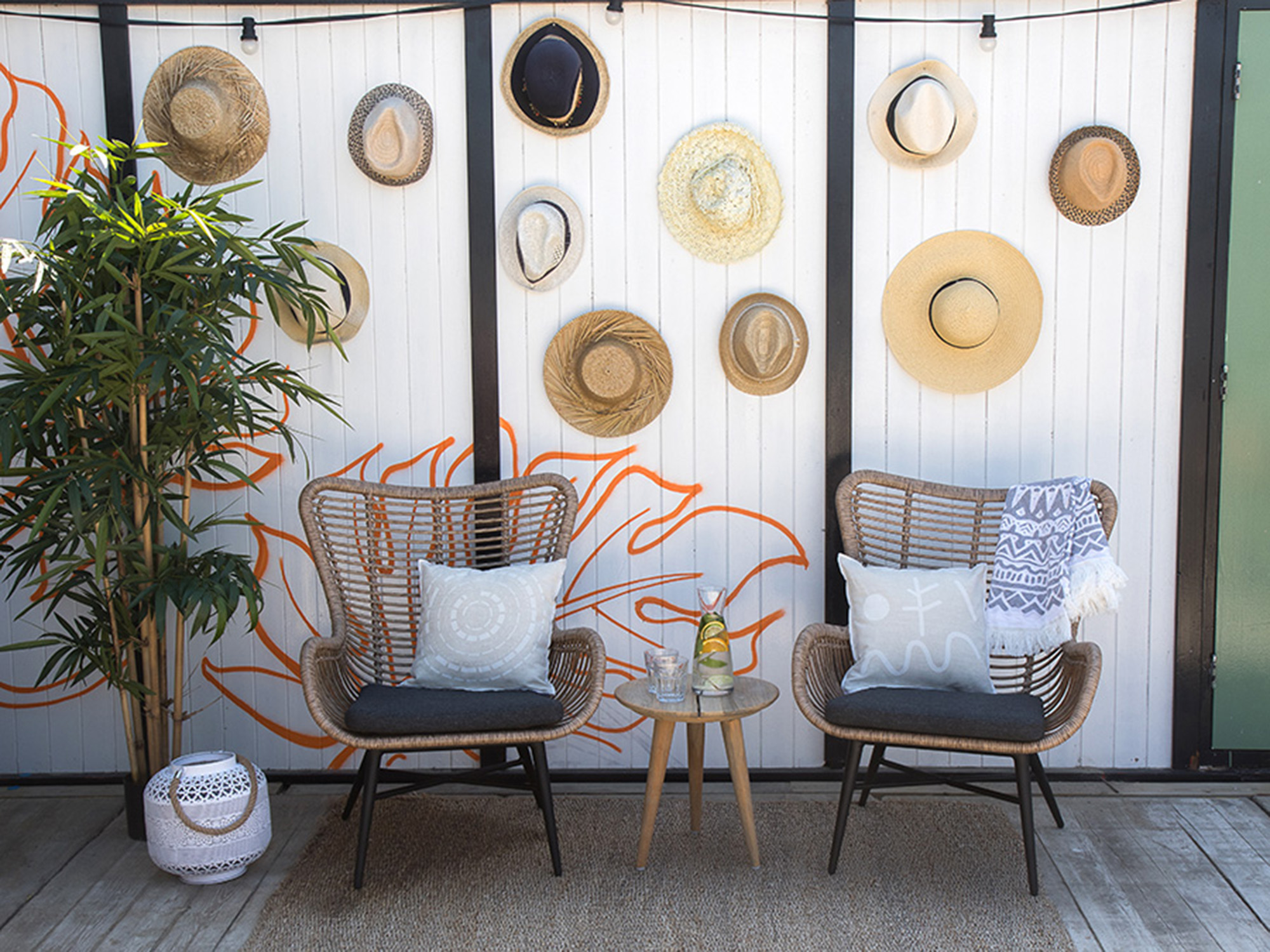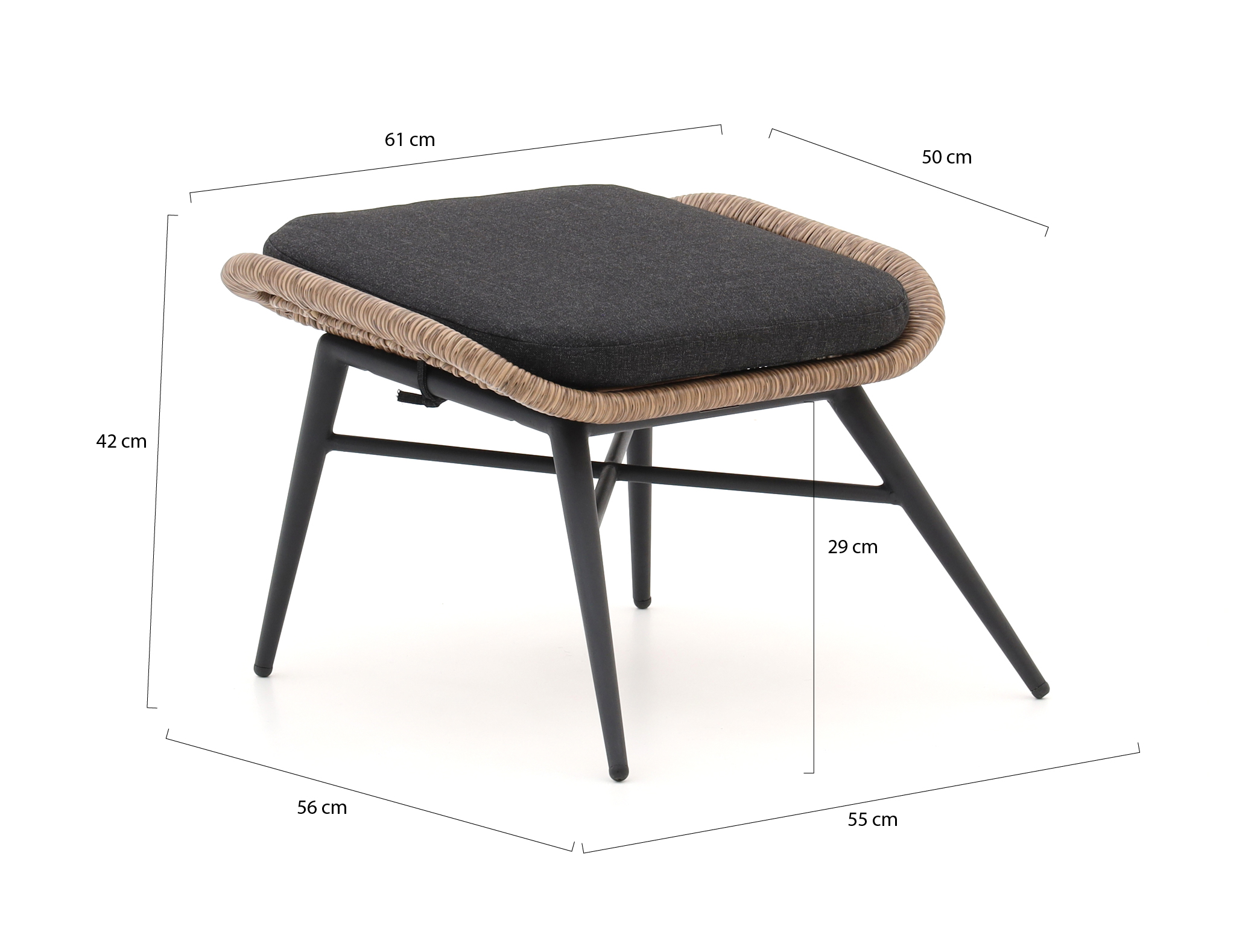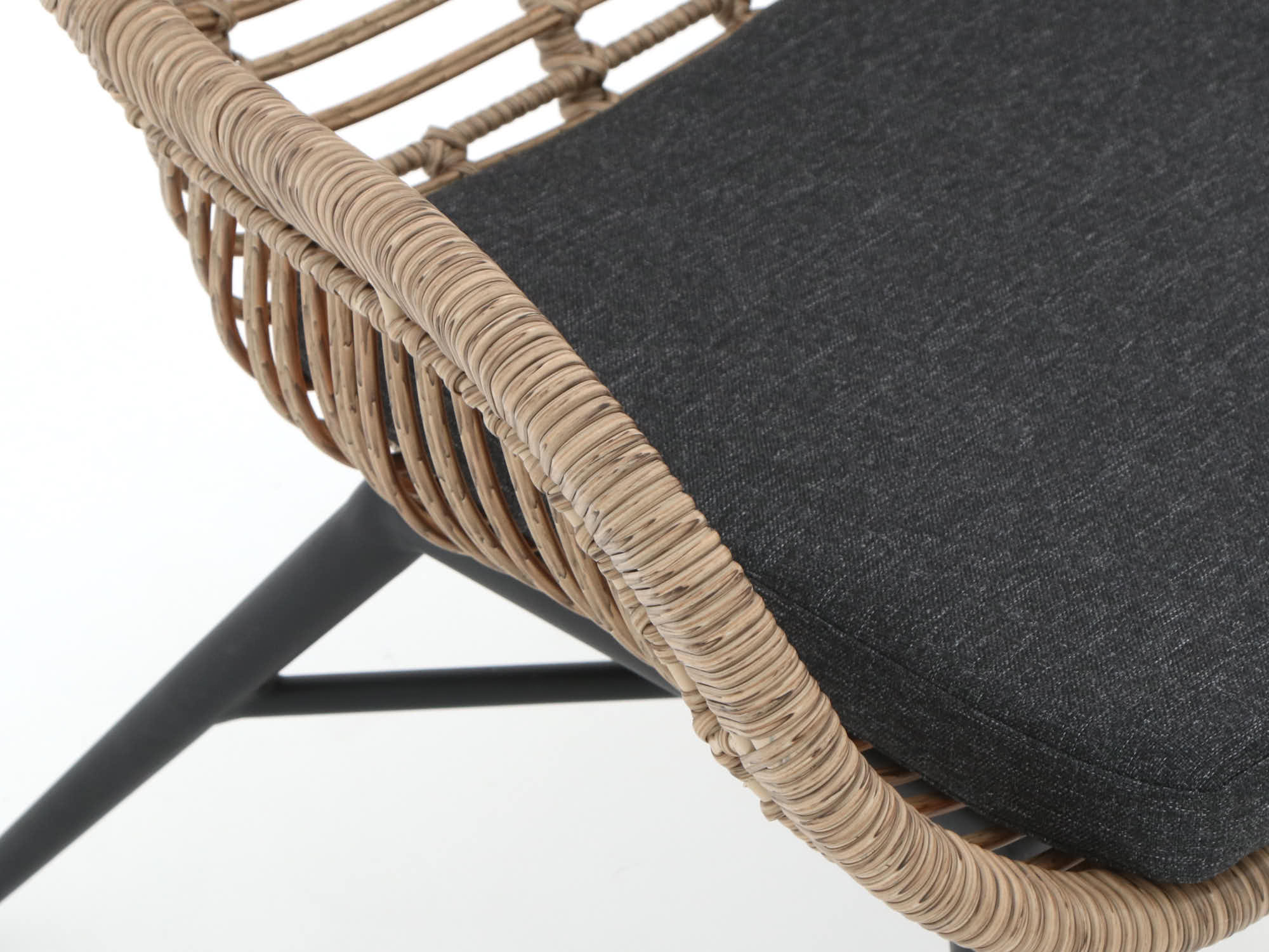 • Wicker zitting: sterk, vochtbestendig vlechtwerk dat lang netjes blijft buiten