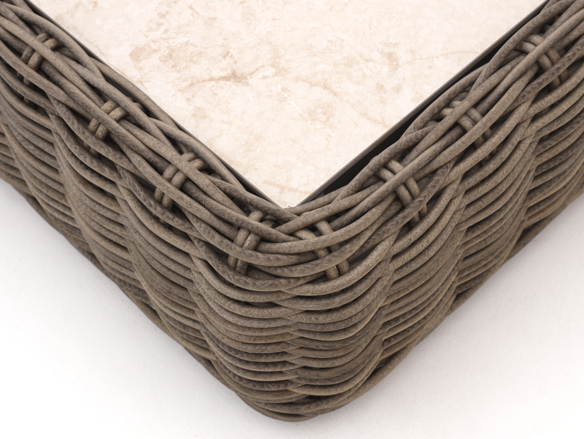 • Wicker onderstel in beige bruin: Licht van gewicht en makkelijk te combineren met veel loungesets en kussens.