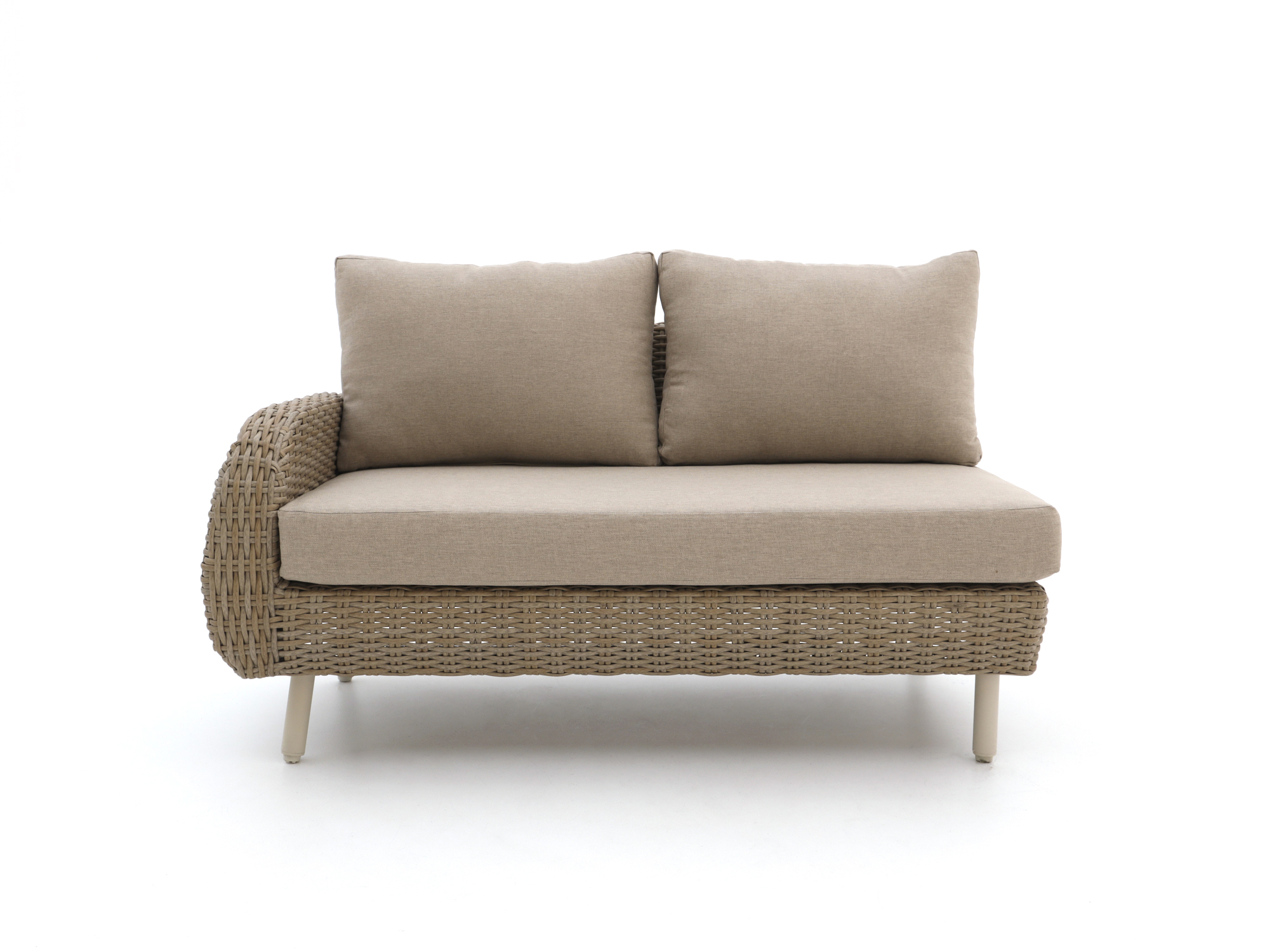 De Intenso Suzzara loungemodule met rechterarm is een losse 2 persoons loungebank van 145 cm breed, ideaal als jij je loungeset wilt uitbreiden of een hoek netjes wilt opvullen. Het wicker frame in een natuurlijke beige tint geeft een rustige uitstraling en is licht van gewicht, waardoor je de bank makkelijk verschuift als je je terras anders wilt indelen. De kussens zijn inbegrepen en hebben afritsbare hoezen, zodat je ze er eenvoudig afhaalt om te reinigen. Deze module is vooral handig als je al een Suzzara set hebt en net twee fijne zitplekken extra wilt zonder meteen een hele nieuwe set aan te schaffen.