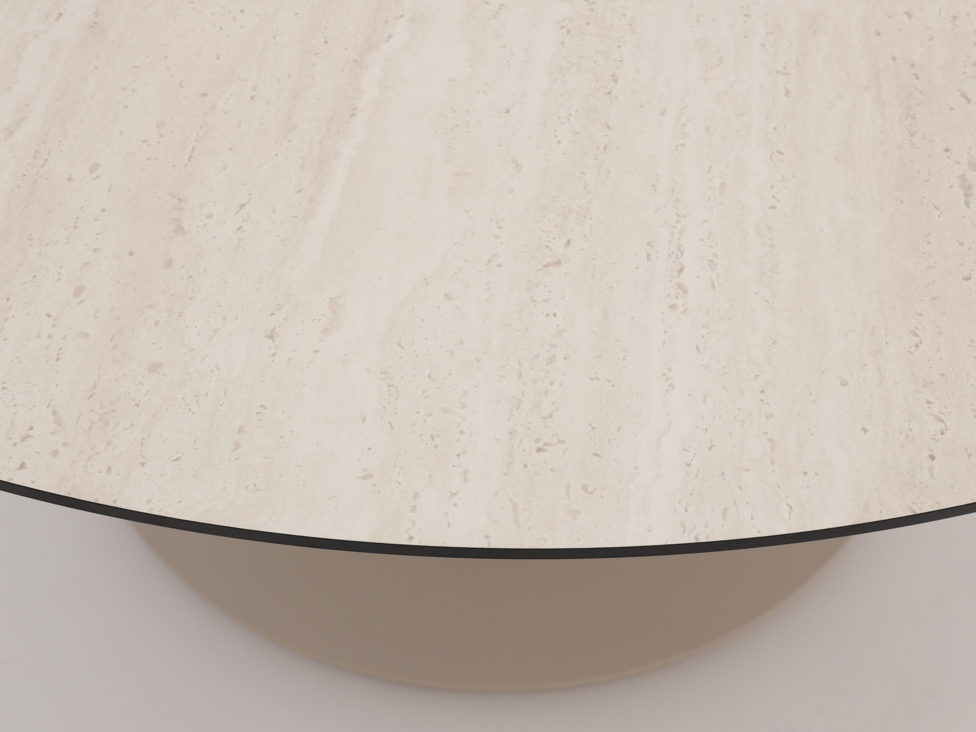 • HPL tafelblad in travertin look: Je krijgt de uitstraling van steen, maar een blad dat in het dagelijks gebruik praktisch is bij eten en drinken.