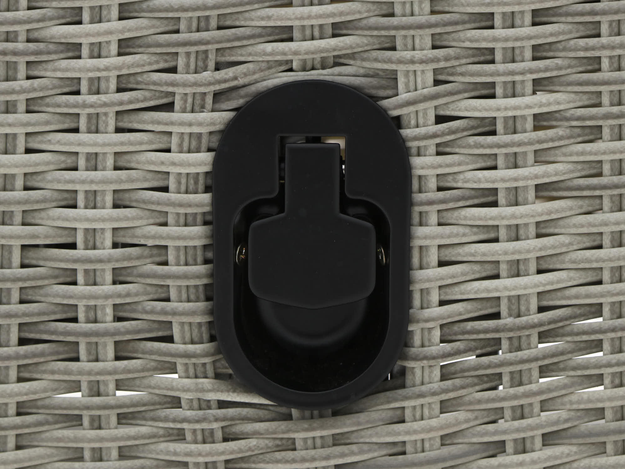 Handgevlochten wicker: Het vlechtwerk is strak afgewerkt en vochtbestendig, waardoor het zijn mooie uitstraling behoudt zonder loshangende draden.