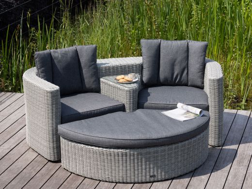 De Intenso Venetië loveseat met voetenbank is een prachtig vormgegeven tuinmeubel uit de zeer ruime collectie van Kees Smit Tuinmeubelen. Heerlijk bijkomen met zijn tweeën na een drukke dag? Het kan met deze fraaie Intenso Venetië loveseat. Tussen de twee zitplaatsen zit een handige verhoging voor uw hapje en drankje. De Intenso Venetië in de kleur Graphite komt op elk terras goed tot zijn recht en ook op dat zonnige plekje achterin de tuin! Uw eigen tuinset samenstellen is in veel gevallen mogelijk. Neem contact met ons op om de mogelijkheden te bespreken of bezoek één van onze Experience Stores XXL en laat u adviseren en inspireren!