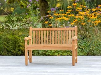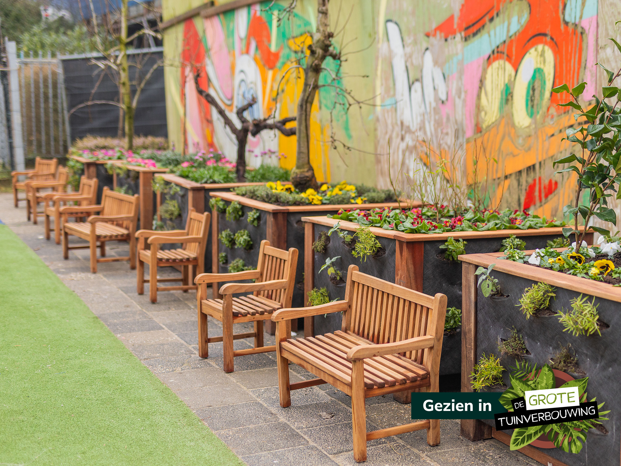 Gemaakt van teakhout: Het gebruik van teakhout zorgt ervoor dat de bank bestand is tegen alle weersomstandigheden en jarenlang meegaat, ideaal voor buitengebruik.