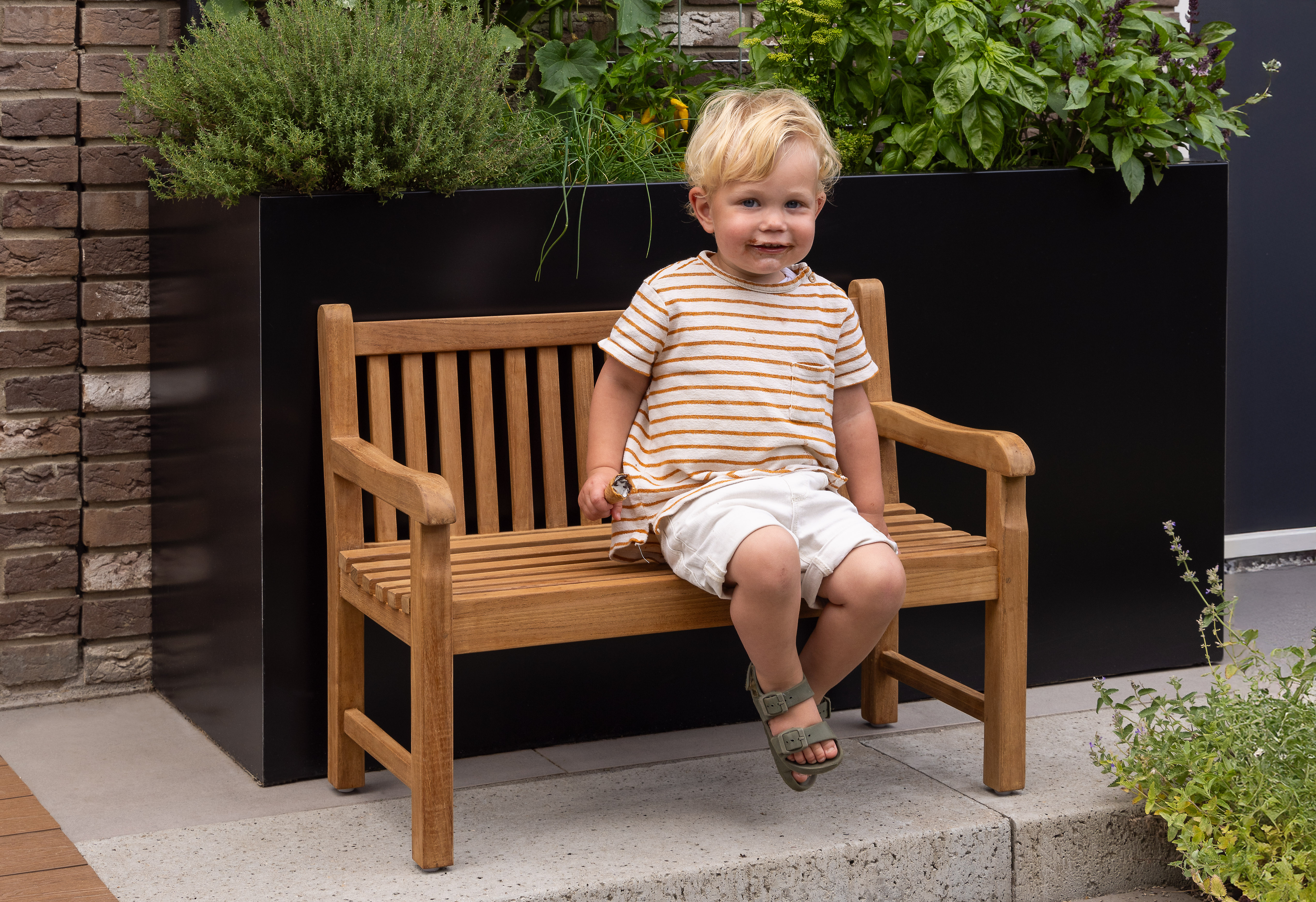 Deze kindertuinbank is een geweldige keuze voor de kleintjes die graag buiten spelen en ontspannen. Gemaakt van sterk teakhout, is deze bank niet alleen duurzaam, maar ook bestand tegen alle weersomstandigheden. Het compacte formaat is perfect voor kinderen van 2 tot 5 jaar, waardoor ze hun eigen plekje in de tuin hebben. De natuurlijke bruine kleur van het teakhout voegt een warme en uitnodigende uitstraling toe aan elke buitenruimte. Met deze bank creëer je een gezellige en veilige plek voor de kleintjes om te genieten van de frisse lucht. Zet 'm neer in de tuin of op het terras en laat de kinderen lekker genieten van hun eigen bankje!