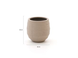 Met een buitenmaat van 30 bij 30 centimeter en een hoogte van 30 centimeter is dit een handzaam formaat dat niet snel in de weg staat, maar wel duidelijk aanwezig is. De zandkleur is makkelijk te combineren met zowel groen als kleurrijke planten, zonder dat het druk oogt. Binnen gebruik je bij echte planten altijd een inzethoes, omdat de pot door de afwateringsgaten en plug niet volledig waterdicht is. Deze pot past vooral bij je als je een rustige, lichte basis wilt en graag een pot zoekt die je zowel naast de bank als bij de tuindeur kunt neerzetten.