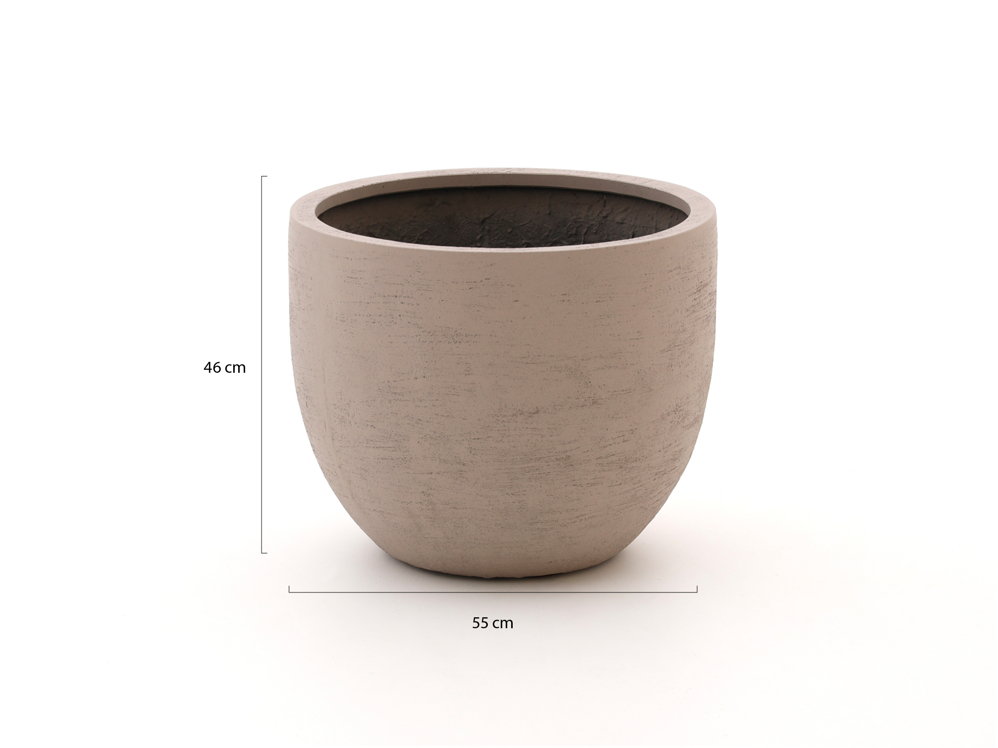 Met een buitendiameter van 55 cm, een opening van 47 cm en een inhoud van 105 liter is deze zandkleurige pot groot genoeg voor een flinke kunstplant of een mooie solitairplant. Het gladde fiberglas met stone powder en polyester resin laat zich eenvoudig schoonmaken met lauwwarm water en een zachte borstel. Gebruik binnen met echte planten altijd een inzethoes, want de meegeleverde plug maakt de pot niet volledig waterdicht. Deze bloempot past vooral bij je als je een grote, rustige blikvanger wilt met weinig onderhoud, maar liever geen volledig gevulde pot meer verplaatst.
