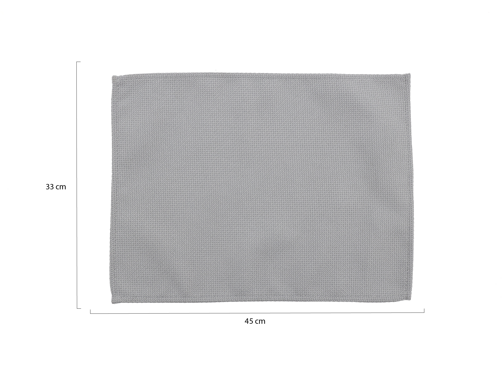 Met de Madison x Kees Smit placemat 33x45cm grijs bescherm je je tuintafel tegen krassen en vlekken tijdens het eten, zonder dat je meteen het hele tafelblad hoeft te bedekken. Door het rechthoekige formaat van 33x45 cm past je bord, bestek en glas er makkelijk op, of zet je er een serveerschaal op als je aan het barbecueën bent. De neutrale grijze kleur combineert rustig met bijna elke tuintafel, of die nou van hout, kunststof of aluminium is. Gemaakt van polyester, dus lekker praktisch in gebruik: je legt hem zo neer als je gaat dineren in de tuin en ruimt hem net zo snel weer op in de kast als je klaar bent. Ideaal als je wél een verzorgde tafel wilt, maar geen gedoe met een groot tafelkleed.