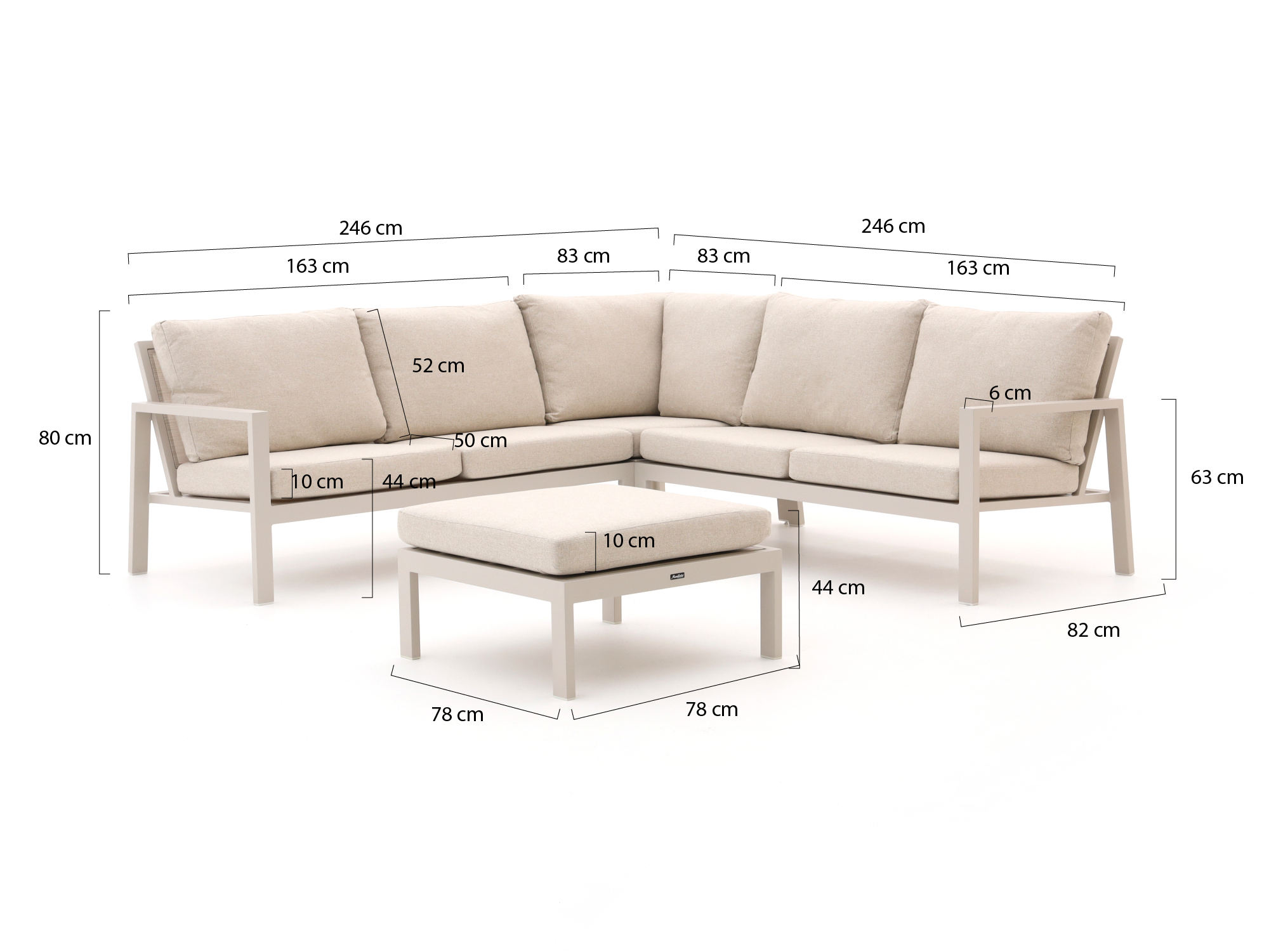 De Manifesto Alzano hoek loungeset is een aluminium loungeset voor 5 personen, ideaal als je compact wilt loungen én je terras slim wilt indelen. Door de hoekopstelling benut je de ruimte in je tuin efficiënt en creëer je één gezellige zithoek waar iedereen makkelijk aanschuift. Het lichte aluminium frame verplaats je eenvoudig als je de set eens anders wilt neerzetten of wilt schoonmaken, zonder dat je je een breuk tilt. De set wordt geleverd inclusief kussens, dus je hoeft niet meer te zoeken naar passende kussens en kunt meteen neerploffen na een lange dag. Kleur Camel Sand met beige textileen: neutraal, rustig en makkelijk te combineren met de rest van je tuin.