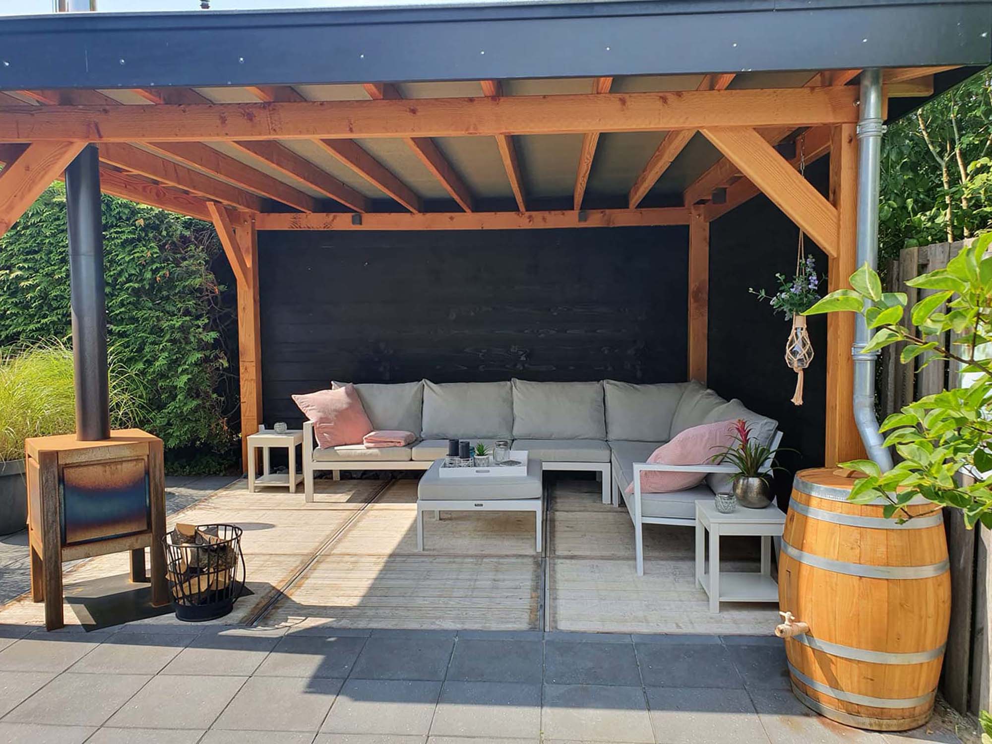 Efficiënt ruimtegebruik: De hoekopstelling benut de ruimte in je tuin optimaal, zodat je zowel kunt zitten als languit kunt liggen.