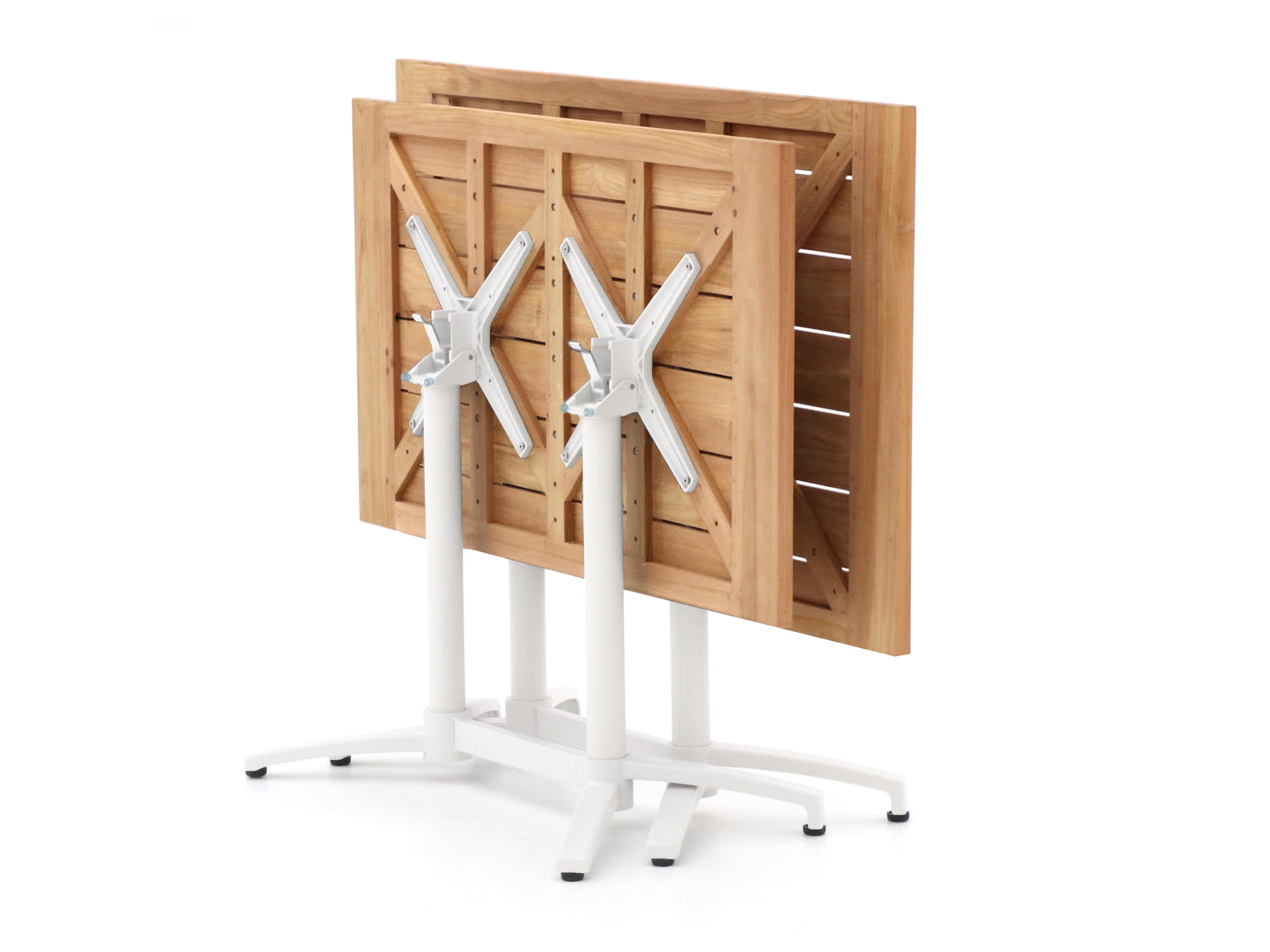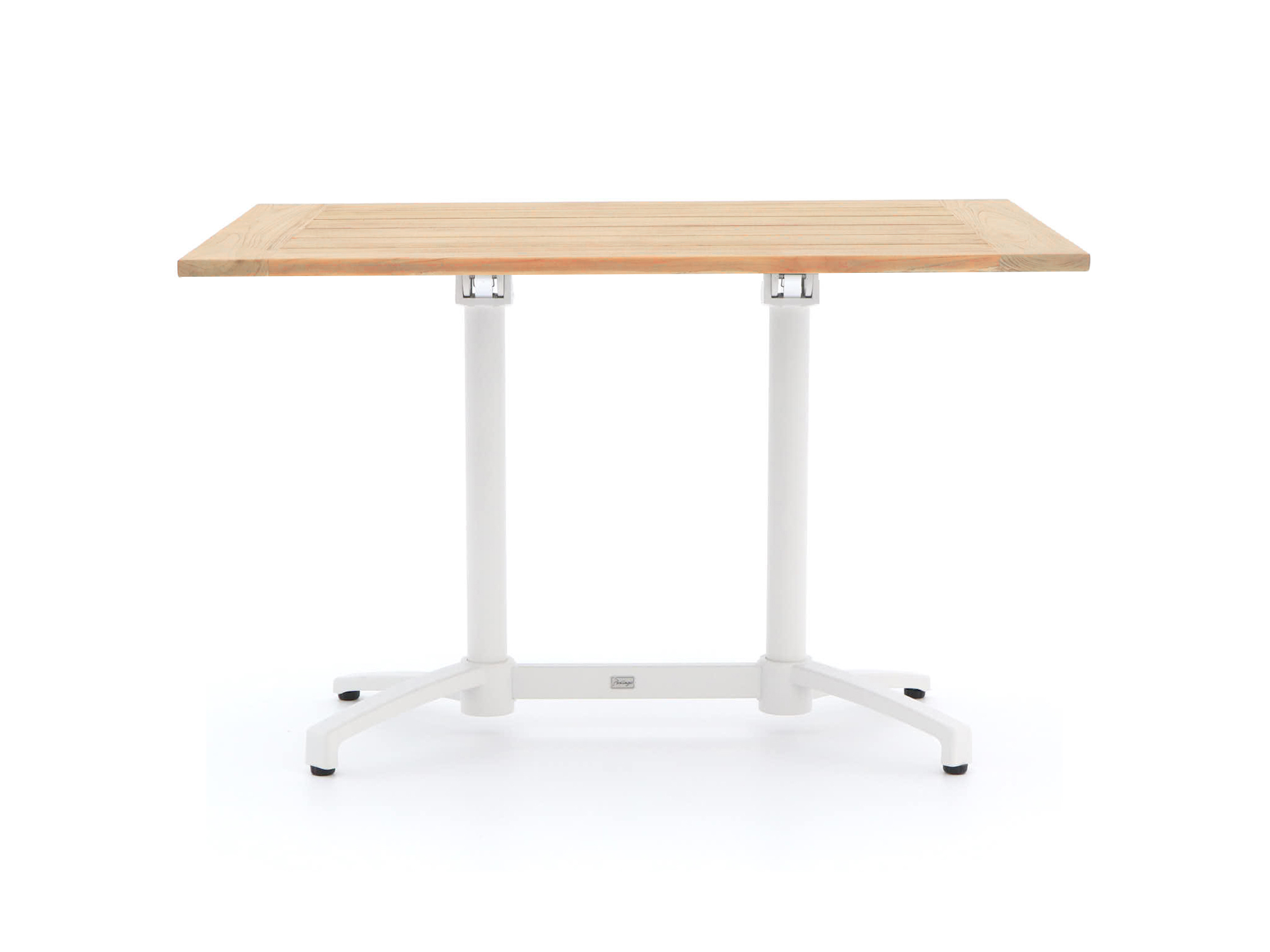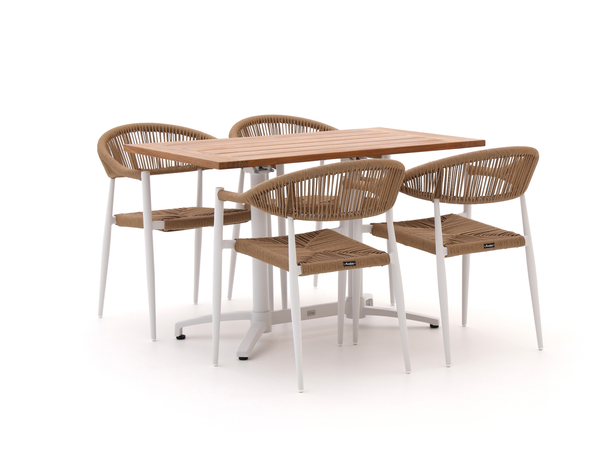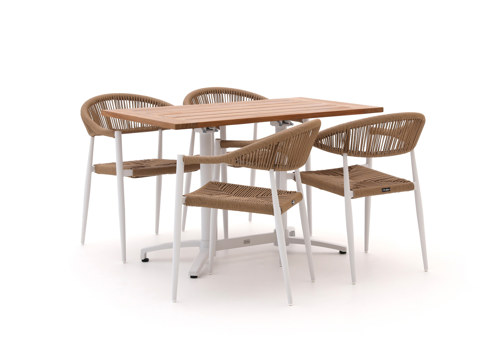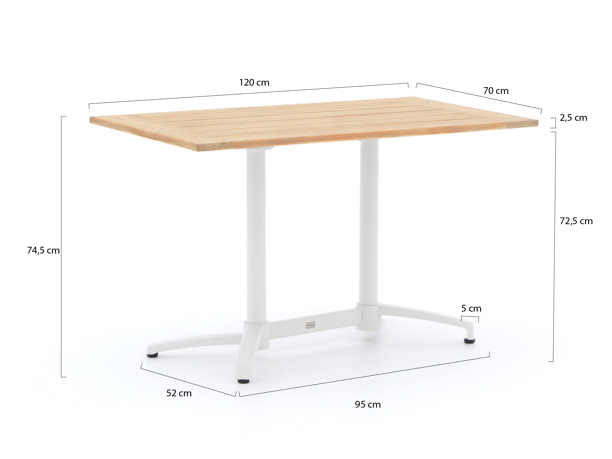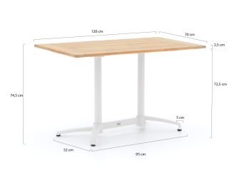 Teakhouten tafelblad: Het tafelblad is gemaakt van teakhout, een materiaal dat bestand is tegen alle weersomstandigheden en jarenlang meegaat. Zo hoef je je geen zorgen te maken over het weer.