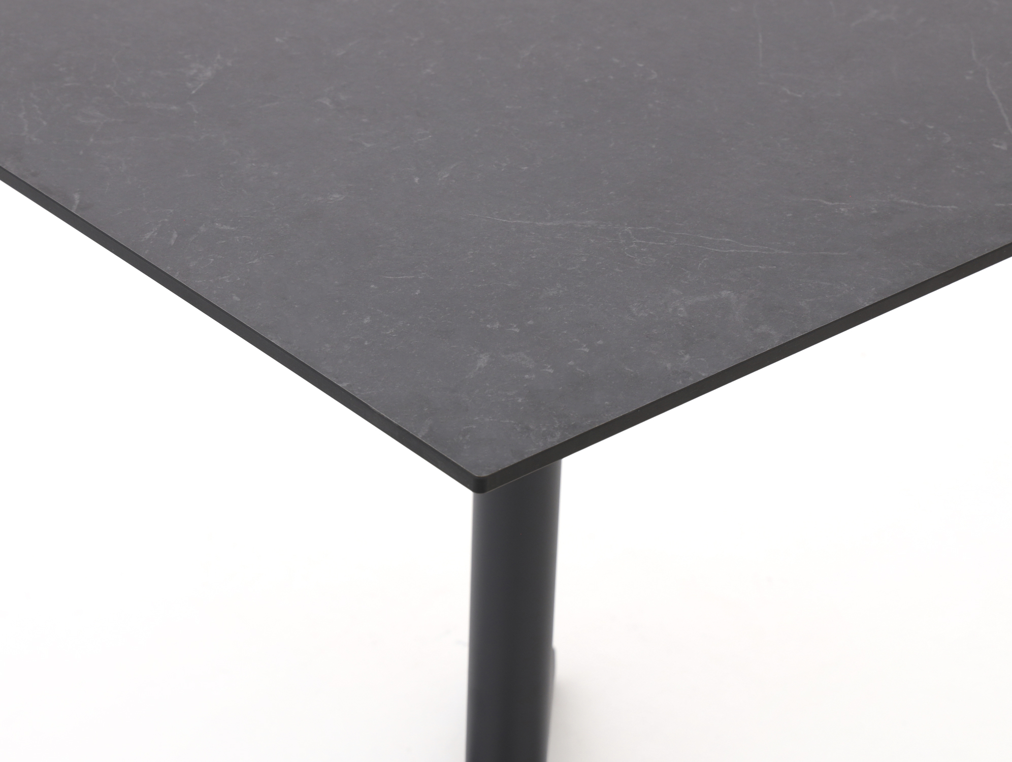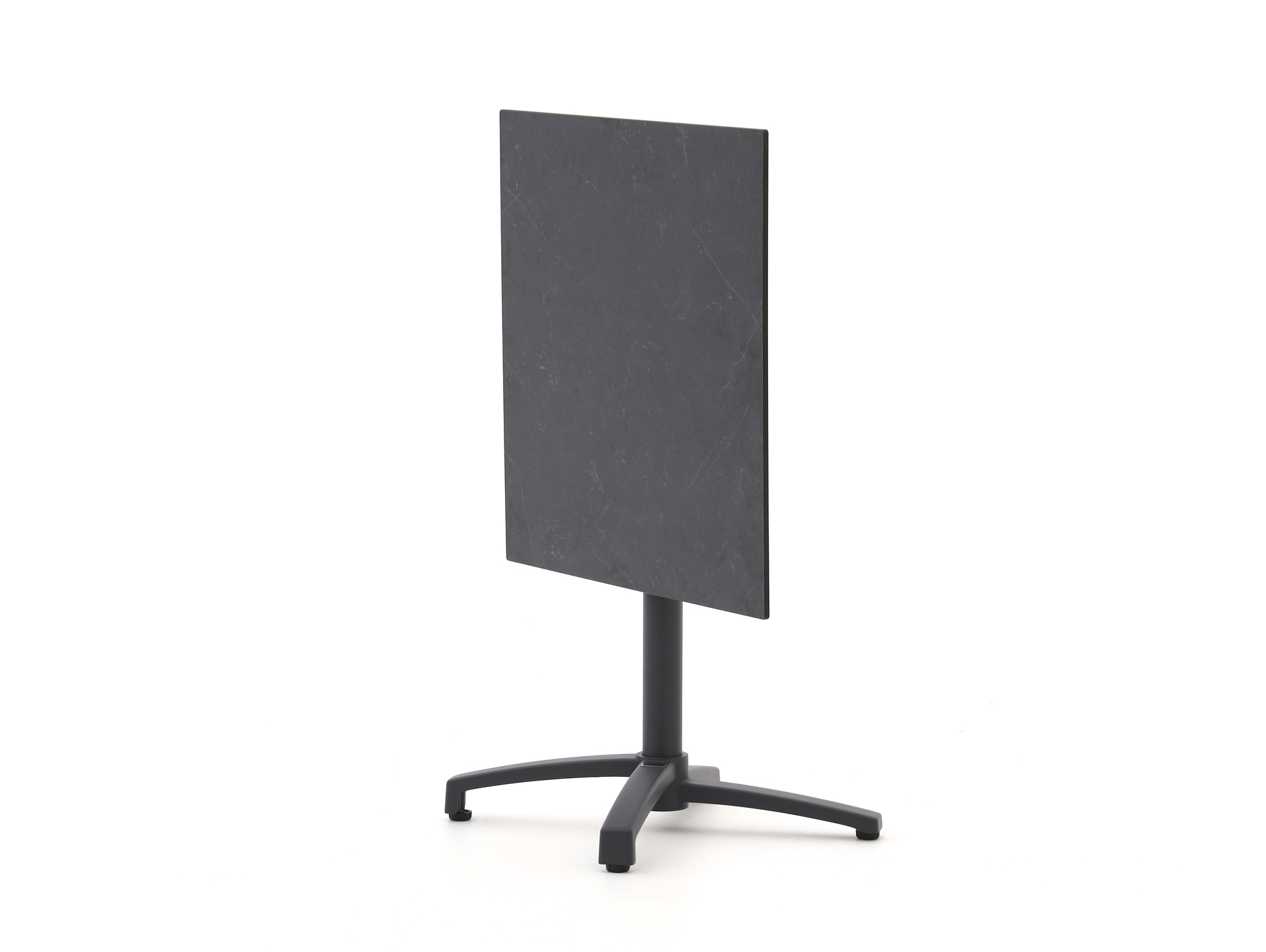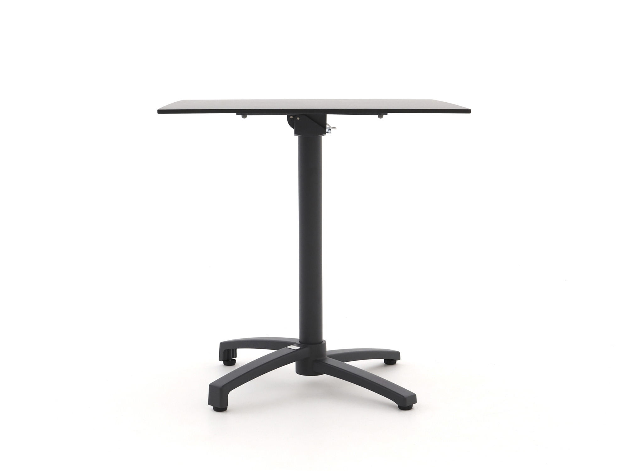 • HPL tafelblad in zwart: Een stevig blad dat tegen een stootje kan en weinig onderhoud vraagt, handig voor dagelijks gebruik buiten.