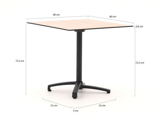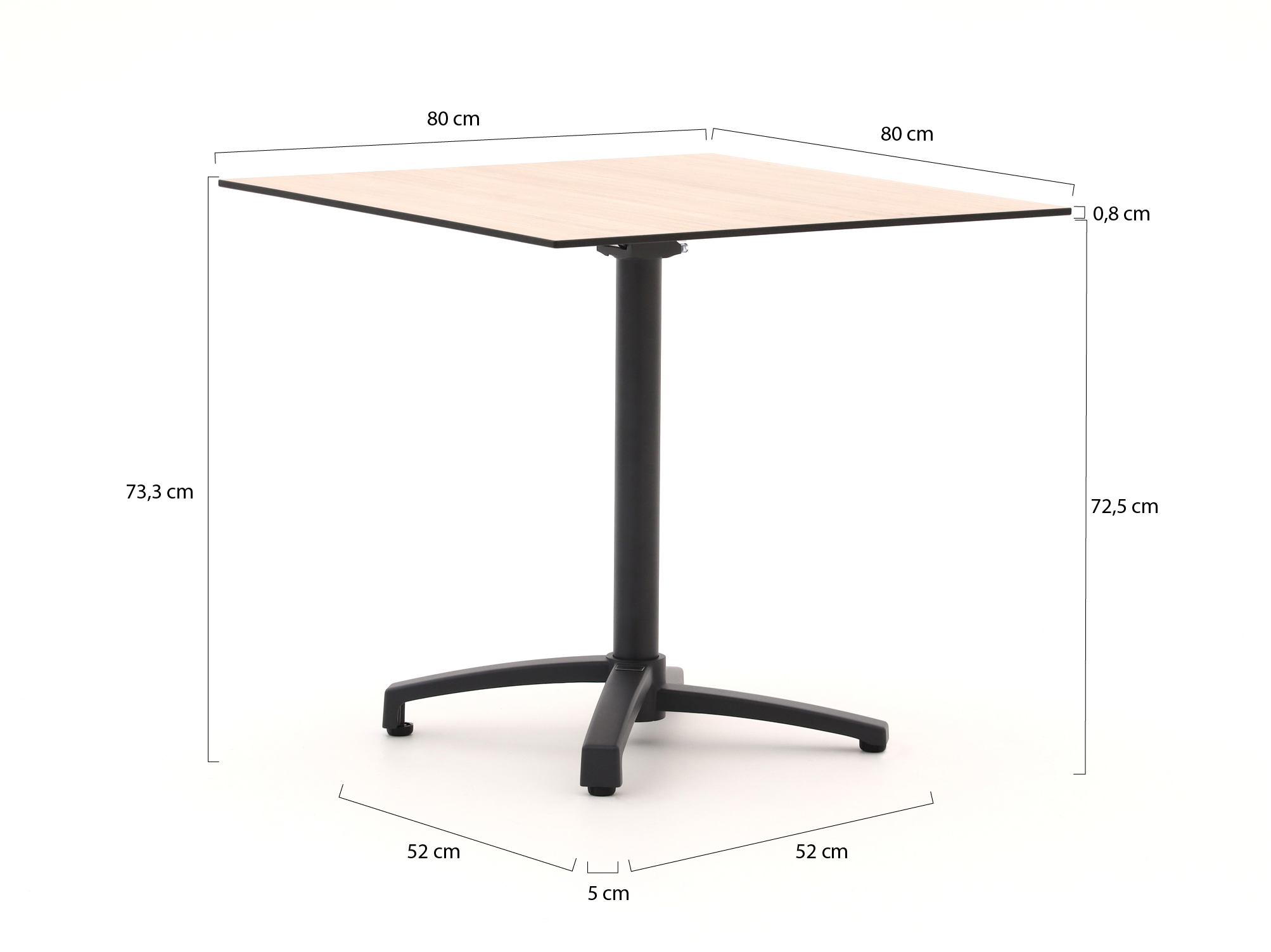 Bellagio Canzo tafelblad 80x80cm t.b.v. inklapbaar pootstel (enkel)   + 0,-