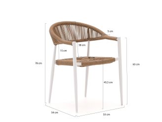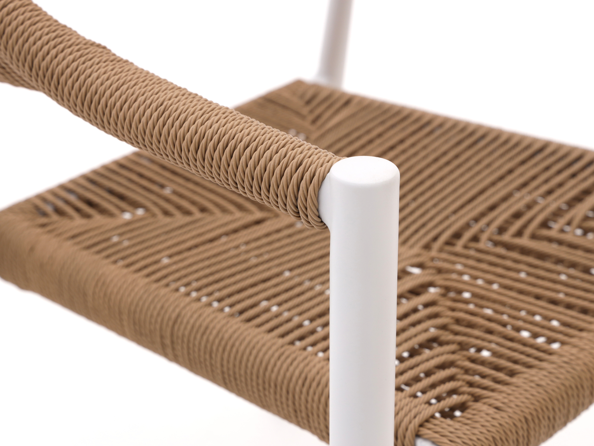 Handgevlochten wicker: De stoelen zijn bekleed met strak afgewerkt vlechtwerk dat vochtbestendig is. Dit betekent dat je geen zorgen hoeft te maken over loshangende draden of een natte zit na een zomerse bui.