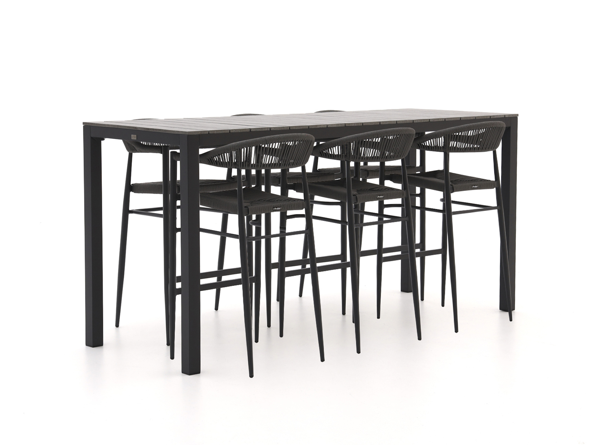 Als je een plek zoekt om met zes man te borrelen of te eten, dan is deze barset precies wat je nodig hebt. De Manifesto Belpasso/Fidenza barset combineert een strak aluminium onderstel met een polywood tafelblad in een grijze eikenlook. De stoelen zijn gemaakt van rope, wat niet alleen stevig is, maar er ook nog eens tof uitziet. En als je de boel wilt opruimen, stapel je de stoelen gewoon op. Handig toch?