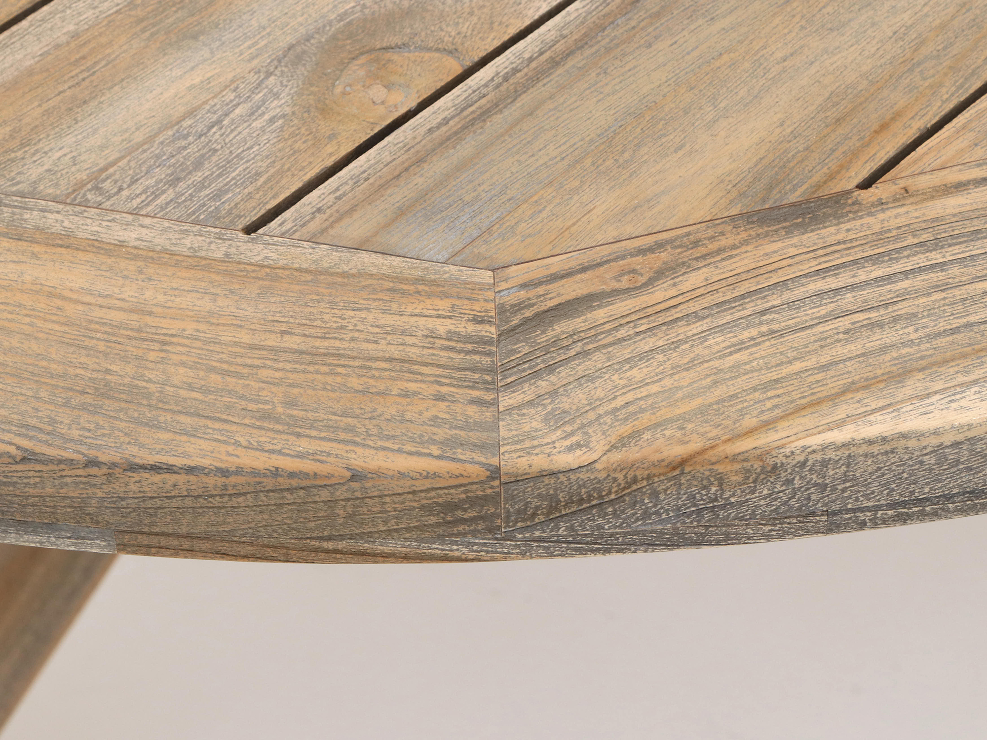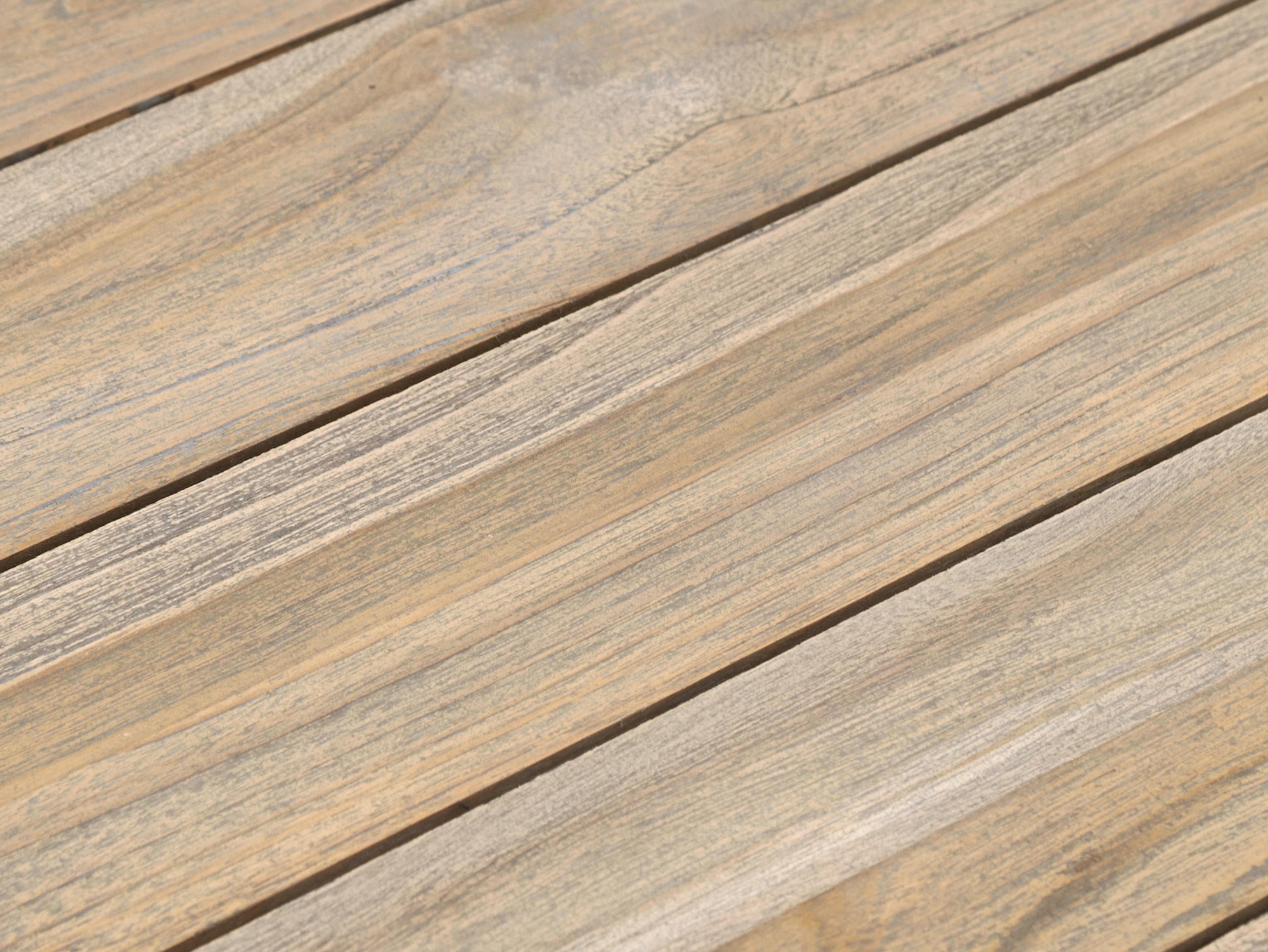 • Old teak greywash blad: Vergrijsde look die kleine vlekjes en gebruikerssporen minder laat opvallen in dagelijks gebruik.