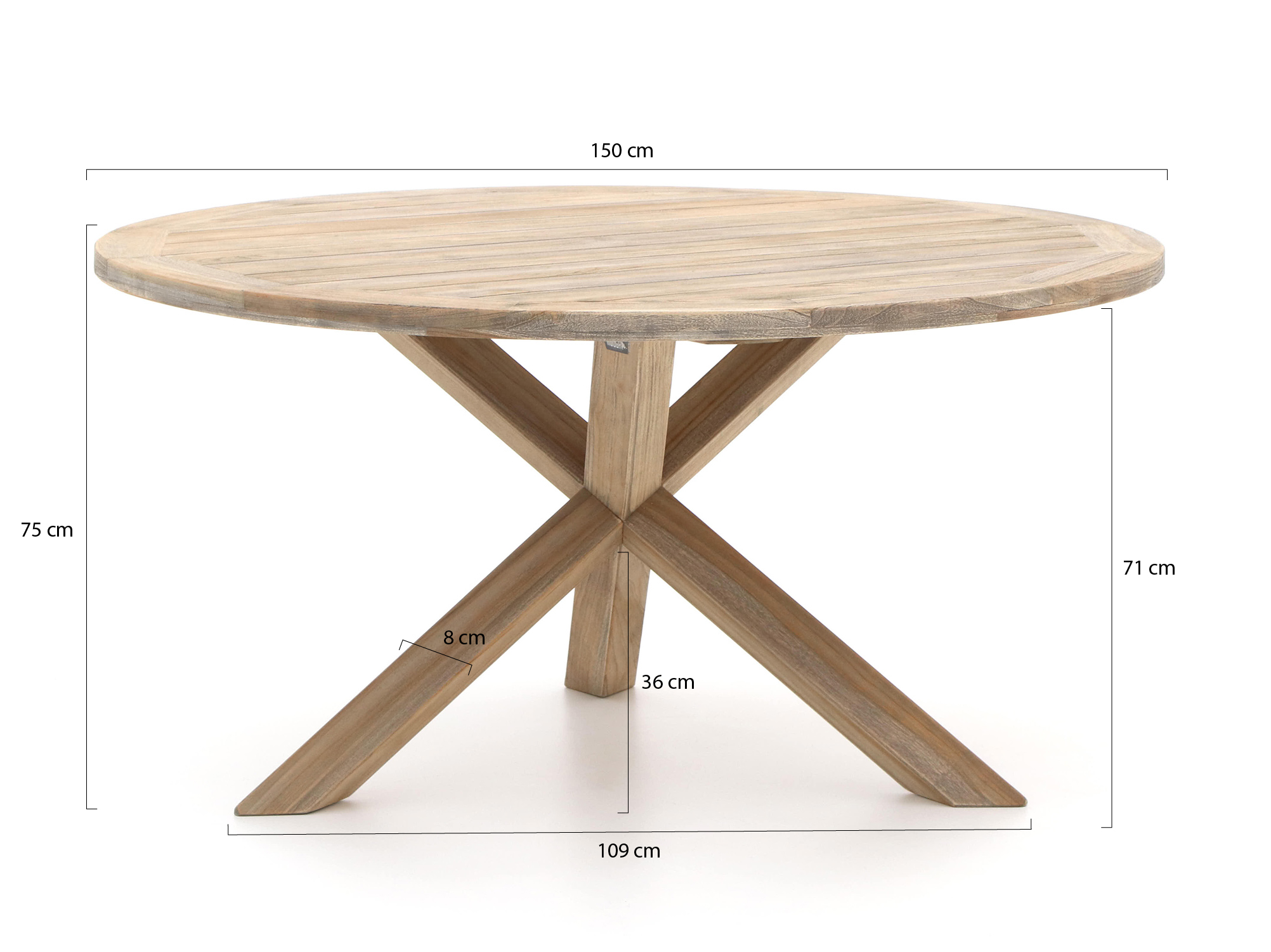 • Teakhouten tafelblad: Sterk natuurproduct dat het hele jaar buiten kan staan, ideaal als je de tafel niet steeds wilt verslepen.
