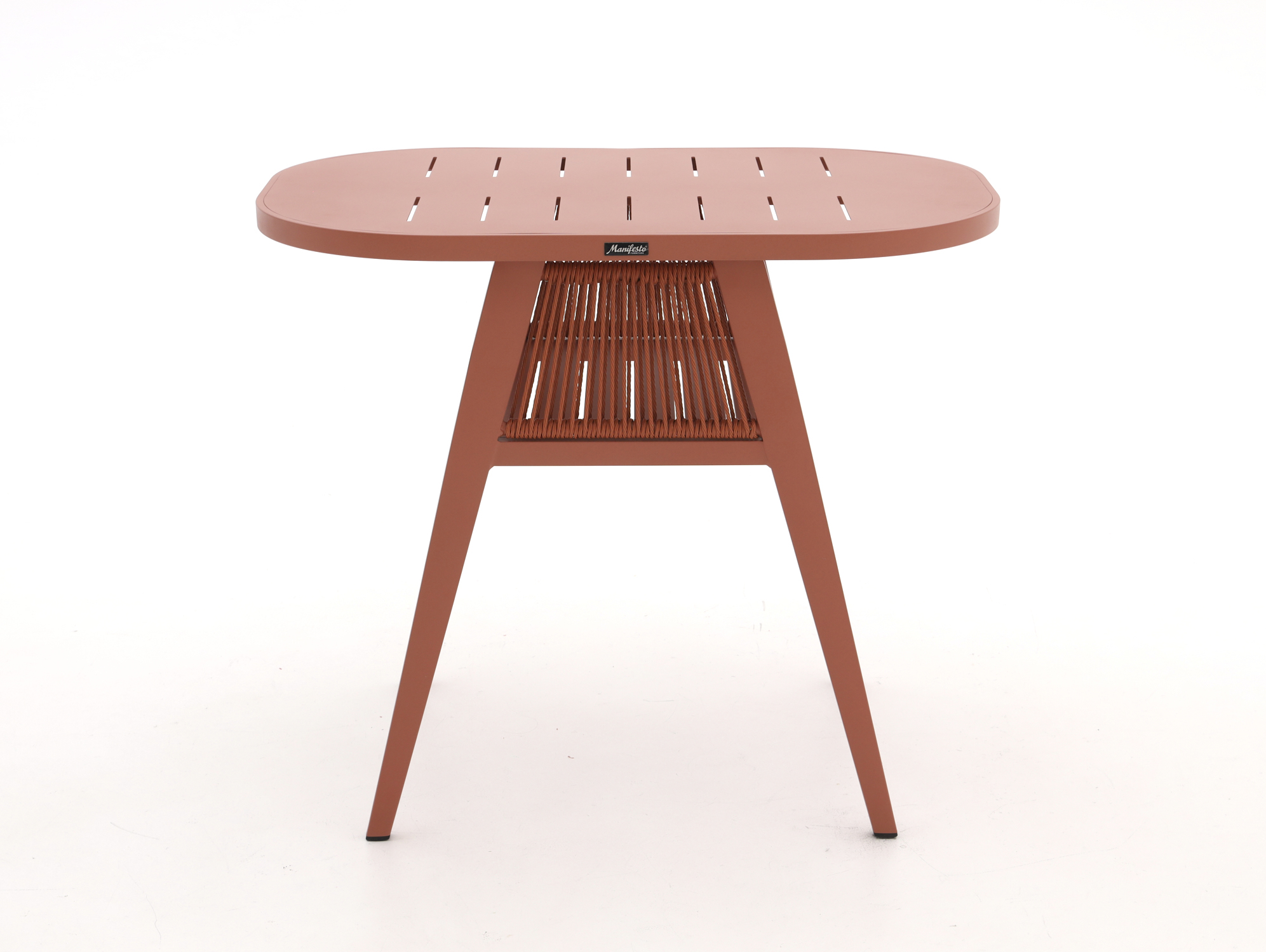 De Manifesto Borsea balkonset is een compacte set voor 2 personen, ideaal als je een kleiner balkon of terras hebt maar wel comfortabel buiten wilt zitten. Het aluminium frame maakt de set licht van gewicht, waardoor je hem makkelijk verschuift als je bijvoorbeeld even in of uit de zon wilt zitten. De kunststof zittingen in beige zijn stevig en eenvoudig schoon te maken, fijn als je geen zin hebt in gedoe met onderhoud. Dankzij het ronde tafeltje heb je genoeg plek voor koffie, ontbijt of een borrelplankje, zonder dat het halve balkon vol staat.