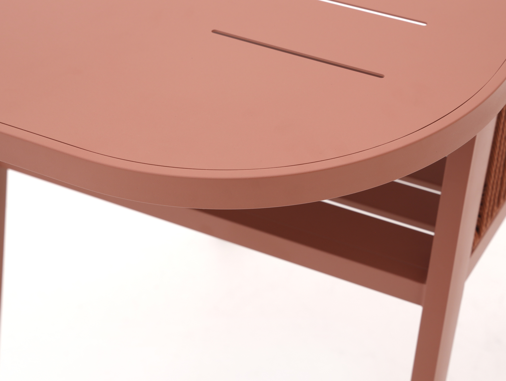 • Het aluminium tafelblad roest niet en is eenvoudig schoon te houden