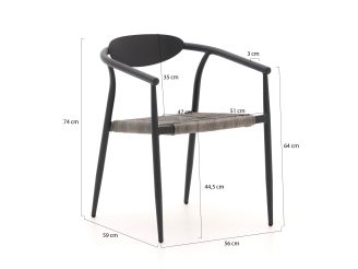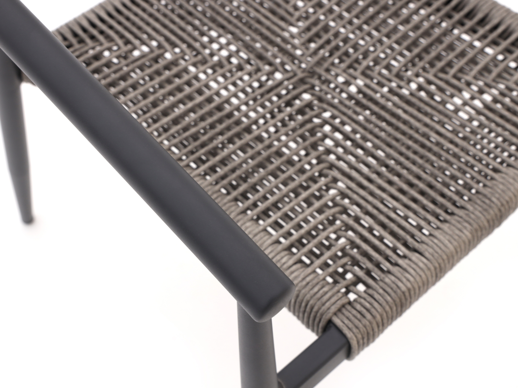 Stevig rope zitting: De zitting van rope is stevig geweven, droogt snel en blijft koel in de zon, wat zorgt voor een comfortabele zitervaring, zelfs op warme dagen.
