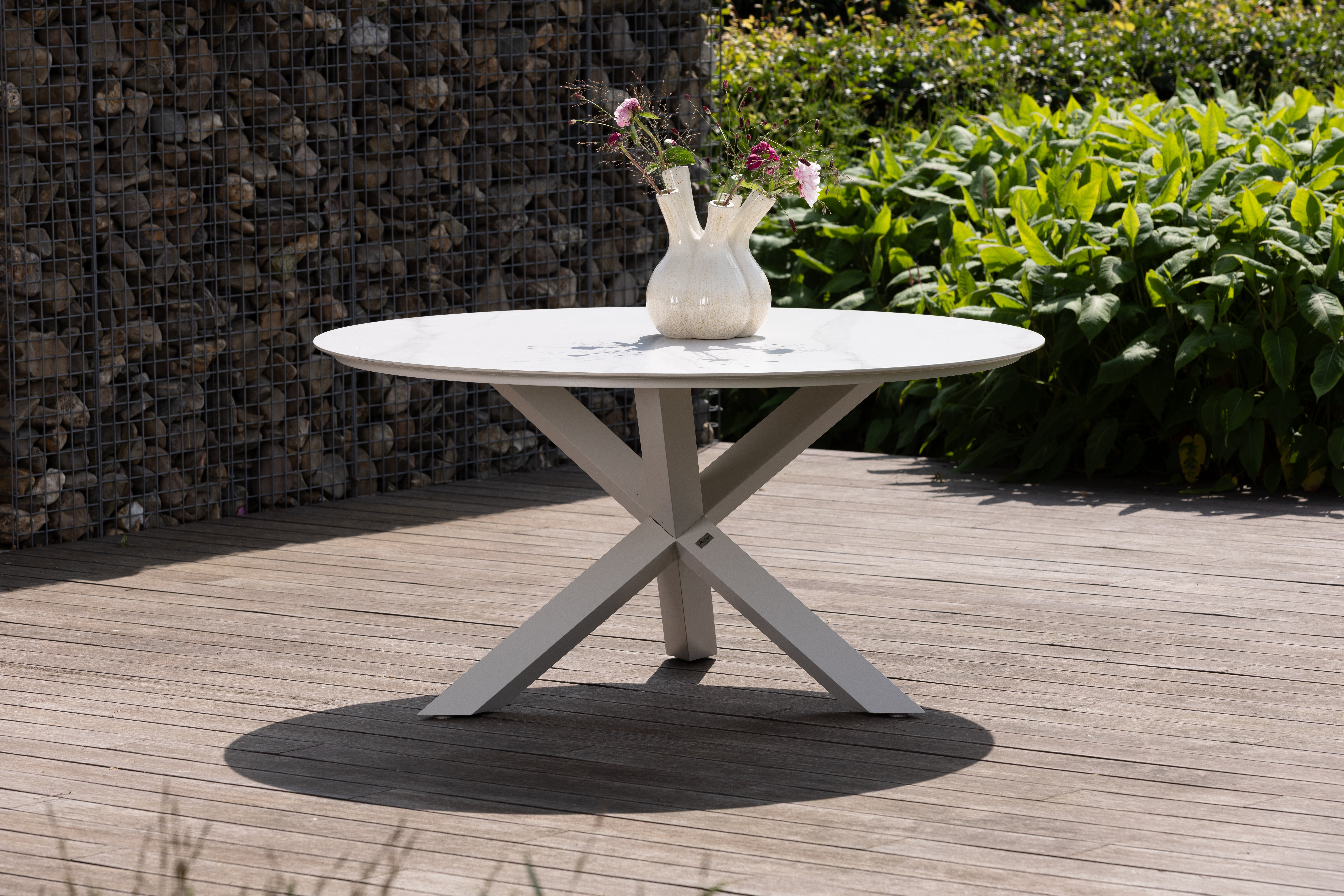 Sintered stone tafelblad: Het tafelblad is bestand tegen krassen en vlekken, waardoor het er jarenlang als nieuw uitziet. Ideaal voor buitengebruik!