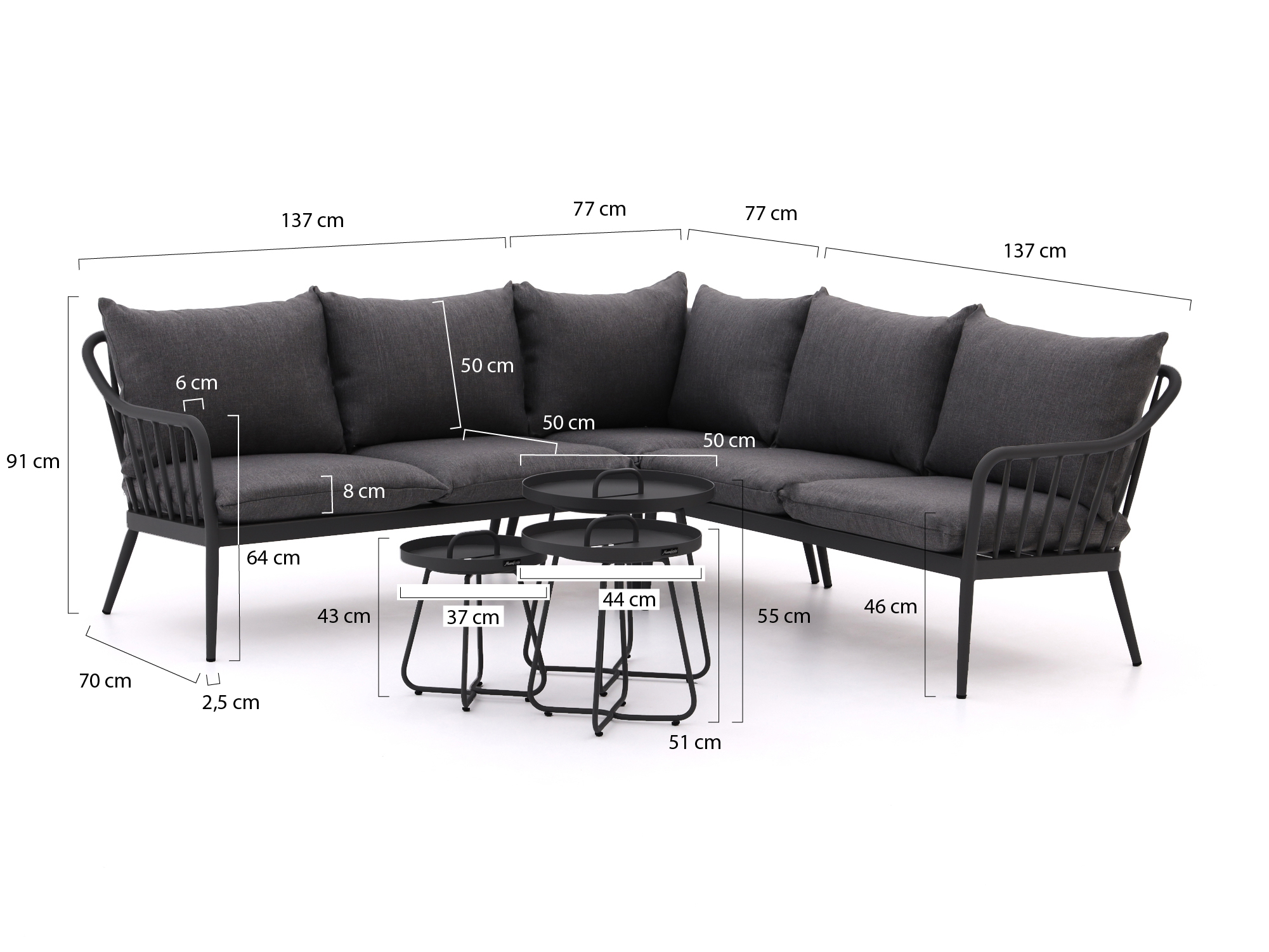 Hoek loungeset: Benut efficiënt de ruimte in je tuin en biedt de mogelijkheid om zowel te zitten als languit te liggen.