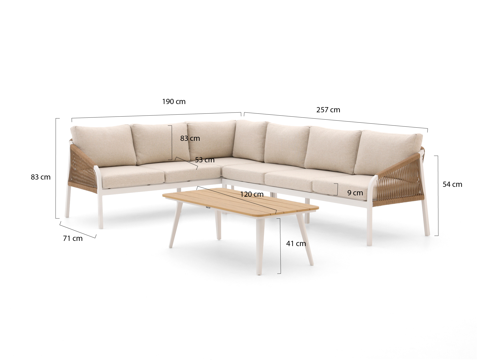 • Afritsbare polyester kussenhoezen: Je haalt de hoezen er zo af om ze te reinigen, wat prettig is als er eens een glas limonade of wijn omgaat.