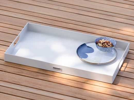 • Wit - Ecru van kleur: De neutrale tinten zorgen ervoor dat het dienblad naadloos aansluit bij diverse stijlen en kleuren van tuinmeubelen. Het geeft een frisse en moderne uitstraling aan je buitenruimte.