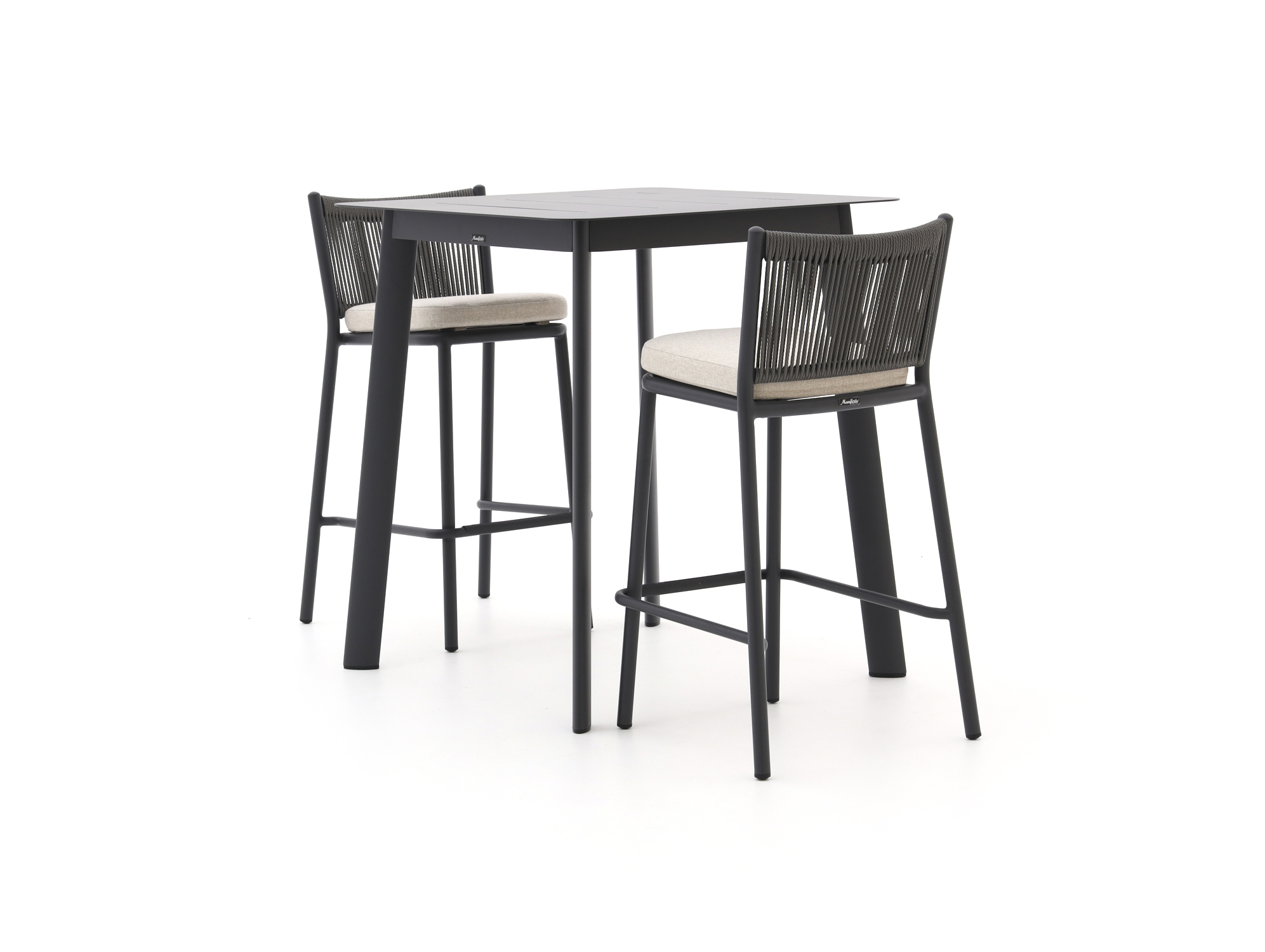 De Manifesto Idro/Savio barset is een compacte barset voor 2 personen, ideaal als je graag wat hoger zit op je terras of balkon. Het frame van aluminium maakt de set licht van gewicht, waardoor je hem makkelijk verschuift als je even een andere opstelling wilt proberen. Het kunststof tafelblad kan prima tegen een regenbui en heeft weinig onderhoud nodig, zodat jij vooral kunt genieten van je koffie, ontbijt of borrelmoment aan deze hoge tafel. Dankzij de smalle rechthoekige tafel van 90 cm past deze set ook goed op een kleiner terras of veranda.