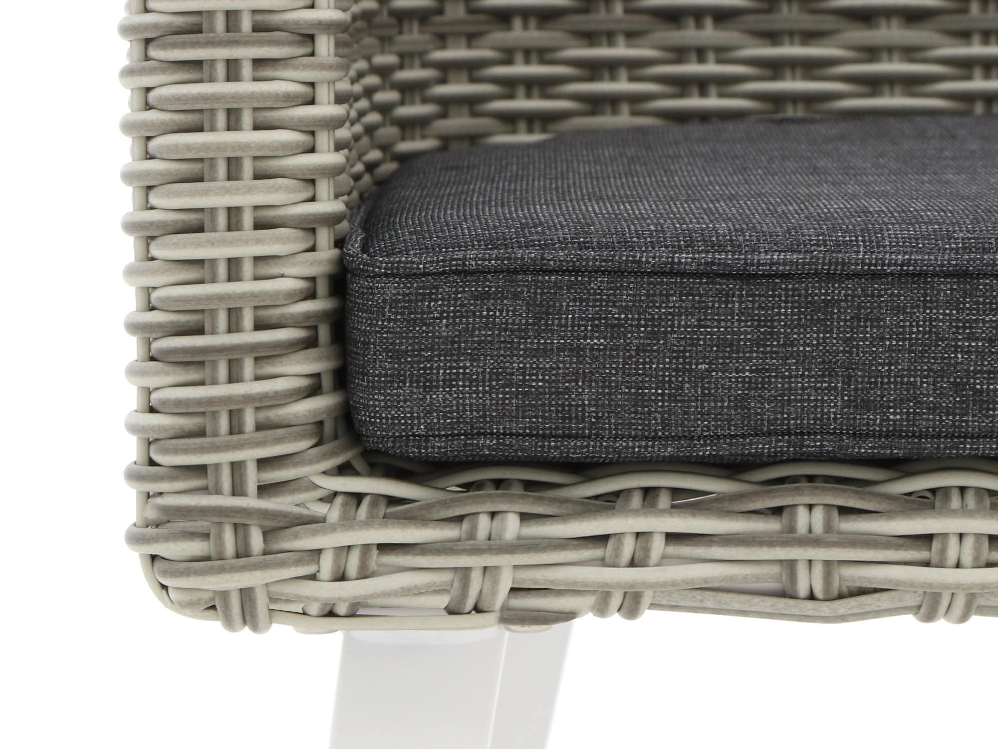 Materiaal zitting: De stoelen zijn voorzien van een wicker zitting. Wicker, ook wel vlechtwerk genoemd, is een populair materiaal voor tuinmeubelen vanwege zijn flexibiliteit en comfort. Het is bestand tegen de elementen en behoudt zijn vorm, zelfs na langdurig gebruik.