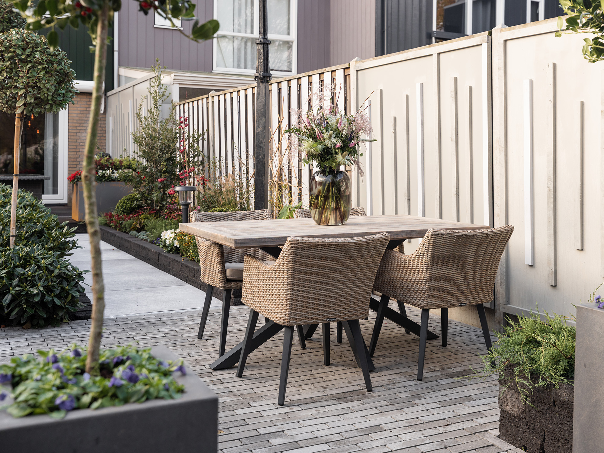 Wil je je tuinset extra beschermen tegen water en vuil? Dan kun je een beschermende laag aanbrengen met onze Kees Smit Teak & Hardhout shield voor het teakhouten tafelblad en Kees Smit Multi-surface beschermer voor de wicker zitting. Zo blijft je tuinset langer mooi en hoef je minder vaak schoon te maken. Dat is wel zo fijn!