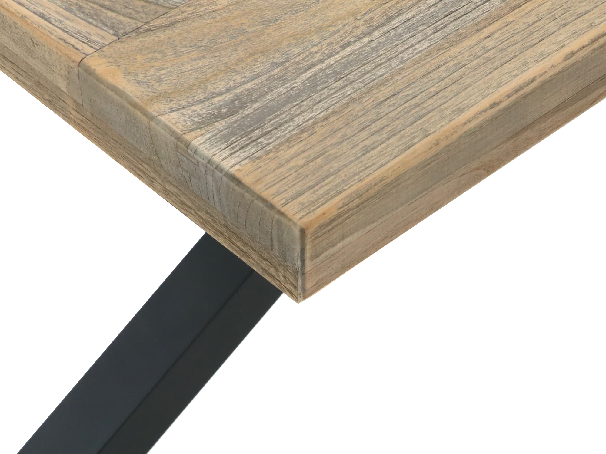 Teakhouten tafelblad: Het tafelblad is gemaakt van Old Teak Greywash, wat bestand is tegen alle weersomstandigheden en jarenlang plezier biedt zonder splinters.