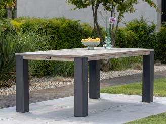 Materiaal tafelblad: Het tafelblad is vervaardigd van teakhout. Teakhout is bekend om zijn duurzaamheid en weerbestendigheid, en het geeft de tafel een natuurlijke en warme uitstraling.