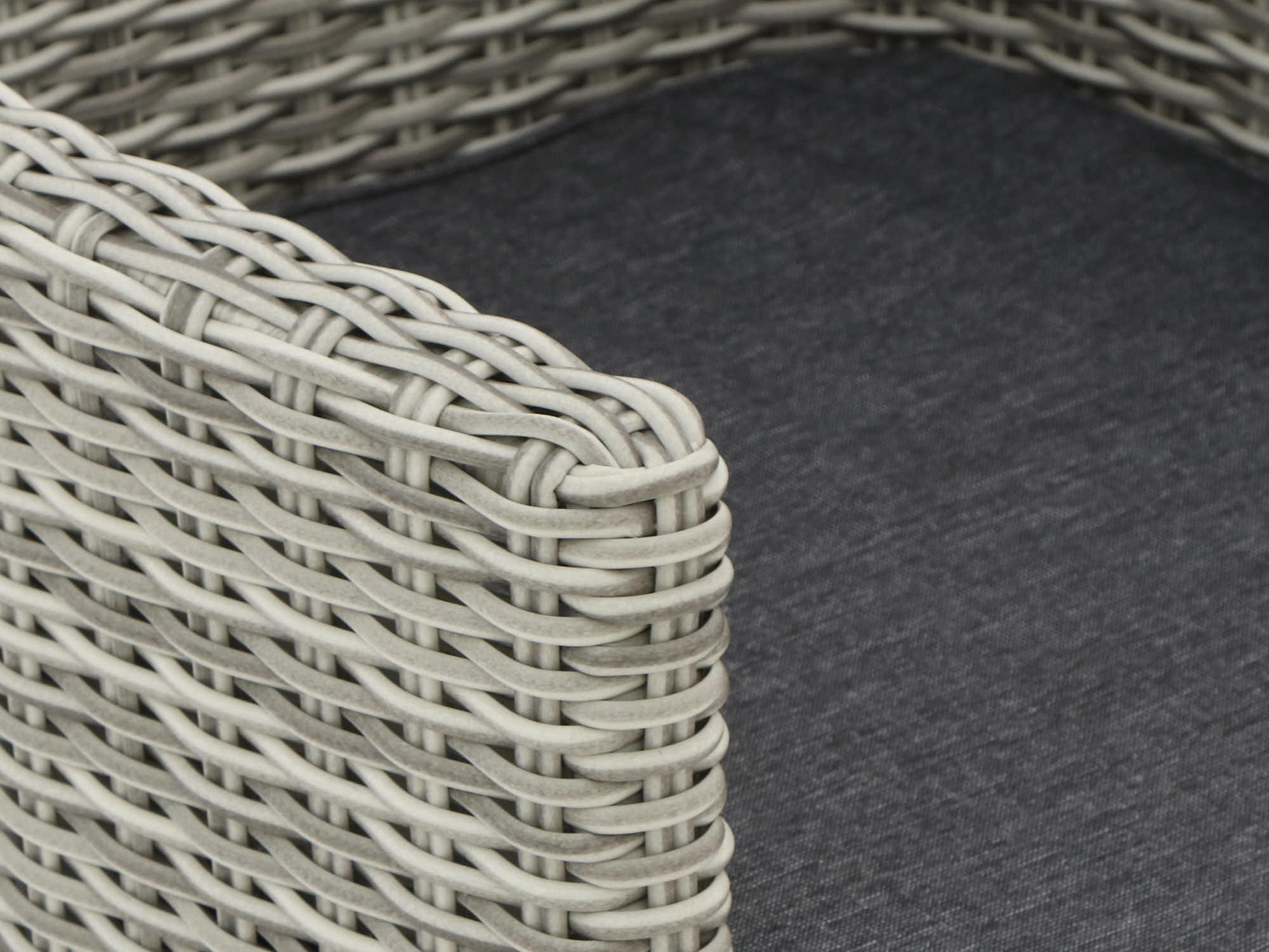Materiaal zitting: De zittingen zijn gemaakt van wicker (vlechtwerk), wat zorgt voor een comfortabele zitervaring. Wicker is een populair materiaal voor tuinmeubelen vanwege zijn flexibiliteit en weerbestendigheid.