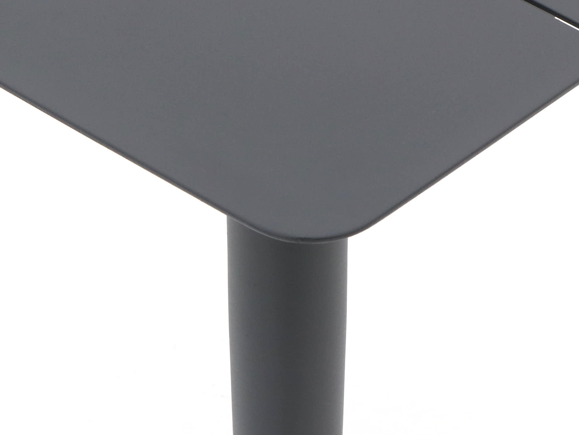 De Manifesto Sora dining tuintafel is geheel vervaardigd uit gepoedercoat aluminium, in de kleur Charcoal. Gepoedercoat houdt in dat de kleur er onder hitte op wordt gebrand, dit zorgt voor een betere beschermlaag. Aluminium is roestvast en onderhoudsarm. Andere voordelen van aluminium zijn dat het erg sterk en licht in gewicht is. De kleur en het strakke design geven deze Sora dining tuintafel een moderne uitstraling. De Manifesto Sora dining tuintafel is onderhoudsarm en kan uiteraard het hele jaar buiten staan.