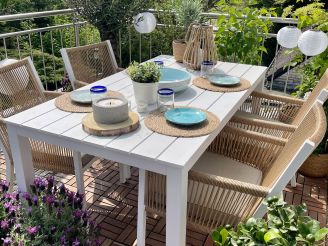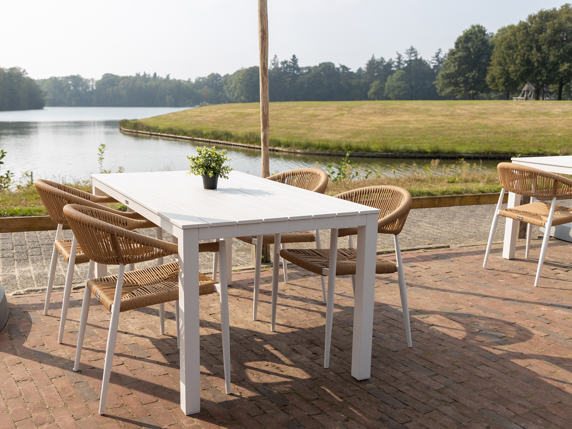 Deze tafel wordt grotendeels ongemonteerd geleverd om transportschade te voorkomen. Geen zorgen, de montage is eenvoudig. Meestal hoef je alleen de poten te bevestigen en een paar schroeven vast te draaien. Met de duidelijke handleiding staat je tafel binnen enkele minuten stevig en stabiel. Zo kun je direct genieten van gezellige momenten in de tuin!