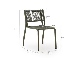 De Manifesto Misurina dining tuinstoel groen is een fijne tuinstoel voor als je graag lang aan tafel zit, maar je stoelen ook weer makkelijk wilt opbergen. Dankzij het stapelbare ontwerp maak je zo ruimte vrij op je terras. Het aluminium frame is licht van gewicht en kan niet doorroesten, dus je verplaatst de stoel makkelijk en laat ’m met een gerust hart buiten staan. De zitting en rug van rope geven een licht verende zit en drogen snel op na een regenbui, waardoor je niet lang hoeft te wachten tot je weer aan kunt schuiven.
