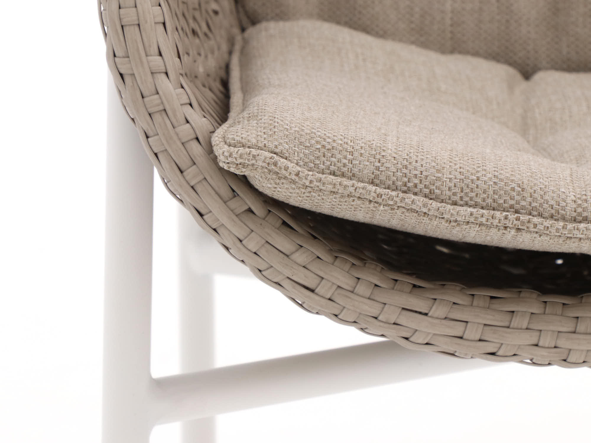 • Grijze zitting met wit frame: neutrale kleuren die je eenvoudig combineert met je andere tuinmeubels