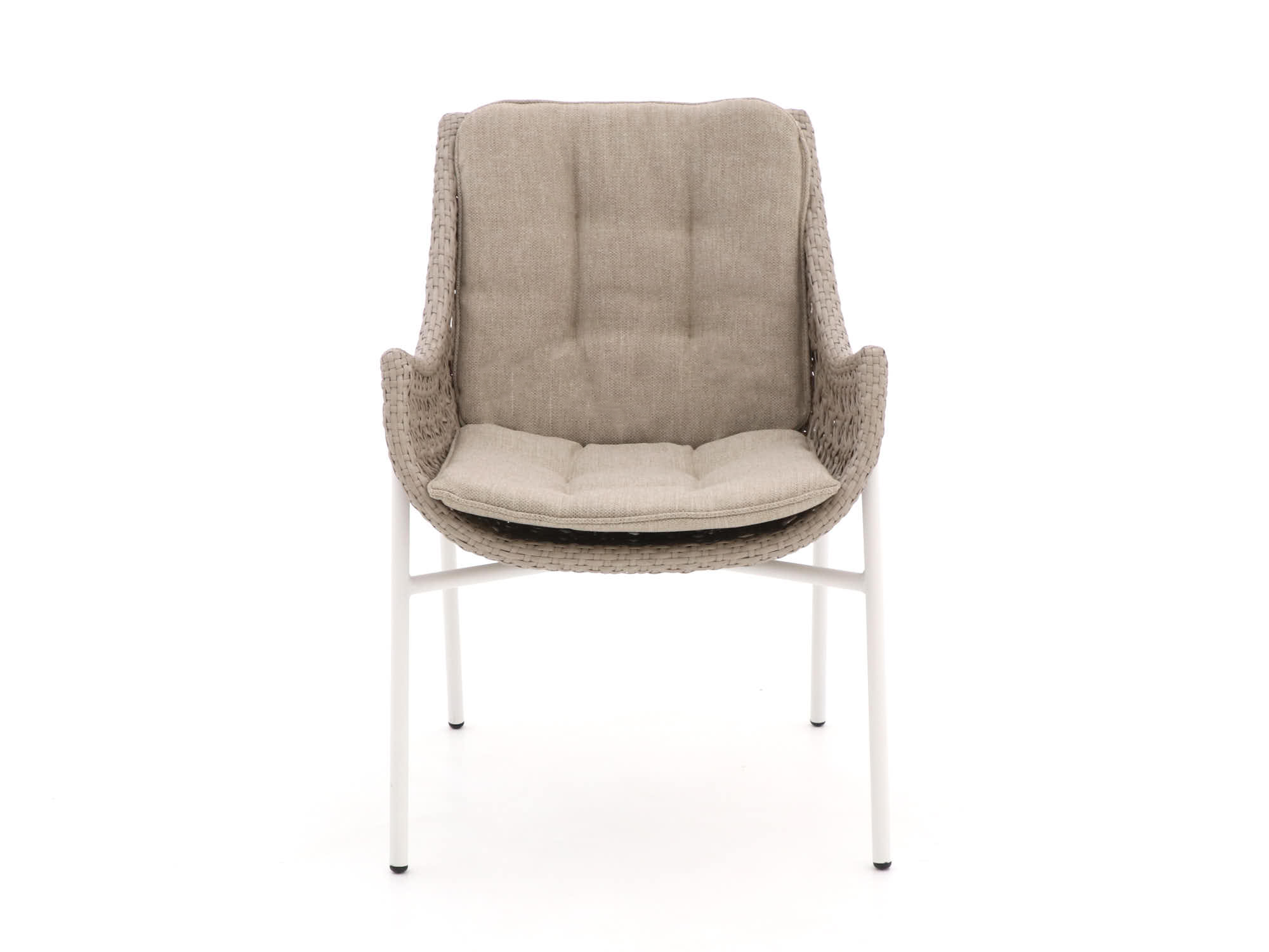 De Manifesto Novara dining tuinstoel grijs is een tuinstoel voor wie graag lang en relaxed aan tafel zit, zonder gedoe. De combinatie van een aluminium frame en grijs wicker geeft je een stevige, maar toch lichte stoel die je makkelijk verschuift als je je terras anders wilt indelen. Het meegeleverde zitkussen in grijs zorgt voor extra zachte zit, zodat je ook tijdens lange etentjes prettig blijft zitten. Aluminium kan niet doorroesten en heeft weinig onderhoud nodig, terwijl wicker vochtbestendig is en jarenlang mooi blijft. Zo heb je een praktische dining stoel waar je het hele seizoen plezier van hebt.
