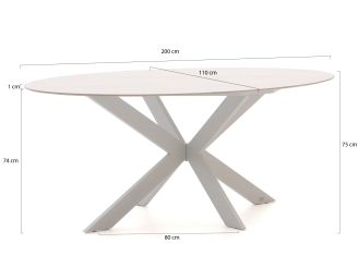Ovaal tafelblad: Het tafelblad heeft geen scherpe hoeken, wat het geheel een ruimtelijke en gezellige uitstraling geeft. Ideaal voor een intiem diner of een spelletje met vrienden.