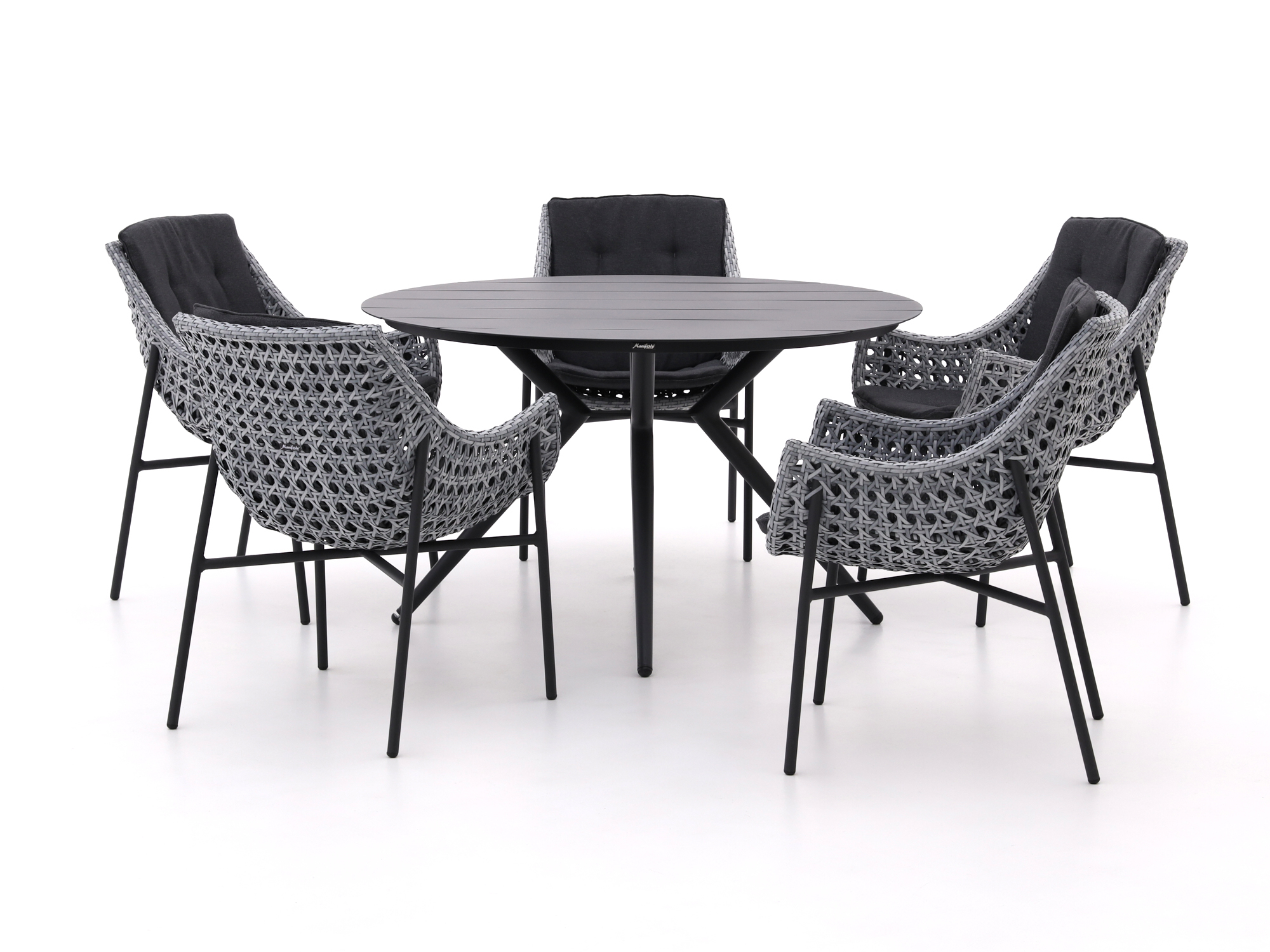 Met de Manifesto Novara/Sora dining tuinset haal je een stijlvolle en praktische aanvulling in je tuin. Deze 6-delige set, uitgevoerd in een elegante grijze kleur met een stoer zwart frame, biedt plaats aan vijf personen. Ideaal voor gezellige etentjes met vrienden of familie. De comfortabele kussens nodigen uit om lekker lang na te tafelen, terwijl het onderhoudsarme aluminium frame en het handgevlochten wicker zorgen voor een duurzame en stevige constructie. Zo kun je zonder zorgen genieten van je buitenleven, of het nu gaat om een zomerse barbecue of een herfstige high tea.