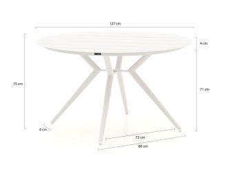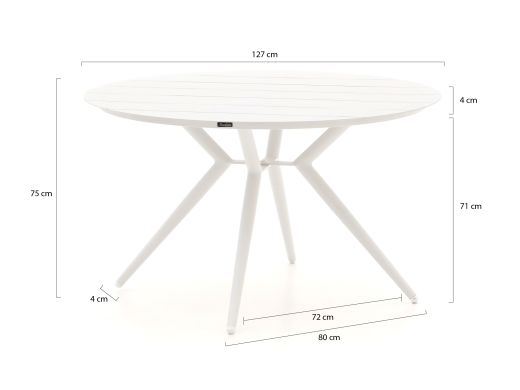 Ronde tafel ø127 cm, 4 zitplaatsen: Iedereen kijkt elkaar aan, dat eet wel zo gezellig. Het blad biedt ruimte voor borden, een kan limonade en nog wat hapjes, zonder dat het vol aanvoelt.