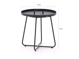De Manifesto Pito bijzet tuintafel is een stijlvolle en praktische toevoeging aan je tuin. Met zijn compacte ronde vorm en een diameter van 50 cm, is deze tafel ideaal voor het neerzetten van je drankje of boek terwijl je geniet van de zon. Extra handig: het tafelblad kun je eraf halen en gebruiken als dienblad! Zo serveer je in één beweging koffie of snacks vanuit je loungeset. Het tafelblad en onderstel zijn gemaakt van aluminium, wat betekent dat de tafel niet alleen licht van gewicht is, maar ook onderhoudsarm en roestvrij. De charcoal kleur geeft een moderne touch aan je buitenruimte. Perfect voor die gezellige hoekjes in je tuin waar je even wilt ontsnappen met een kop koffie. Zet 'm neer waar je wilt, en je hebt altijd een plekje voor je spullen binnen handbereik!