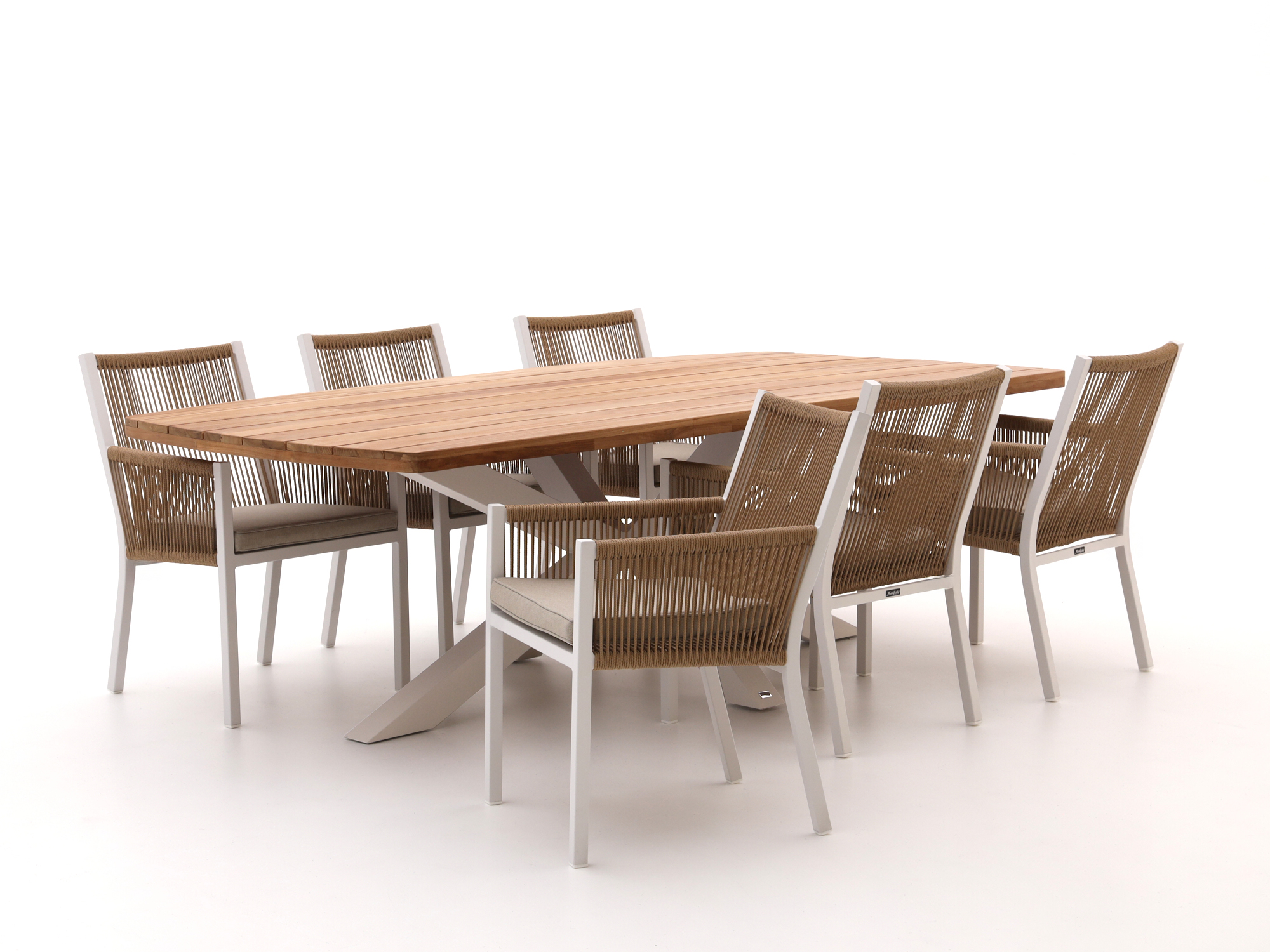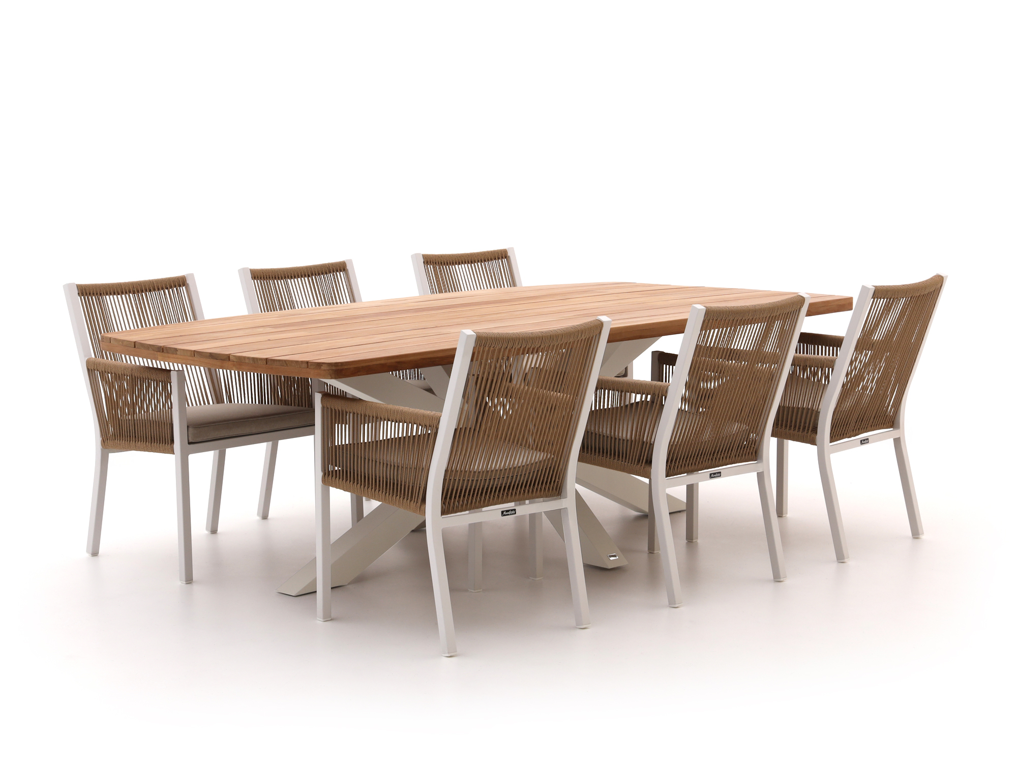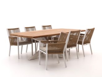 Geniet van lange zomeravonden met de stijlvolle Manifesto Rivola/Induno Deens Ovaal dining tuinset. Deze 7-delige set combineert een elegant teakhouten tafelblad met comfortabele stoelen die zijn afgewerkt met een strak gevlochten rope. Het aluminium frame van zowel de tafel als de stoelen is onderhoudsarm en kan niet roesten, waardoor je jarenlang plezier hebt van deze set. De Deens ovale vorm van de tafel biedt een perfecte mix van strak en gezellig, ideaal voor een intieme setting in je tuin. Nodig vrienden en familie uit, en maak van je tuin het favoriete plekje om samen te komen. En zeg nou zelf, wat is er fijner dan buiten eten aan een tafel die net zo gezellig oogt als hij aanvoelt?