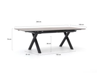 Bellagio Citadella tafelblad t.b.v. dining tuintafel uitschuifbaar 200/260x100x76cm   + 0,-