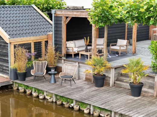 • Neutrale grijze kleur: Combineert eenvoudig met verschillende soorten tuinmeubelen, van hout tot aluminium.