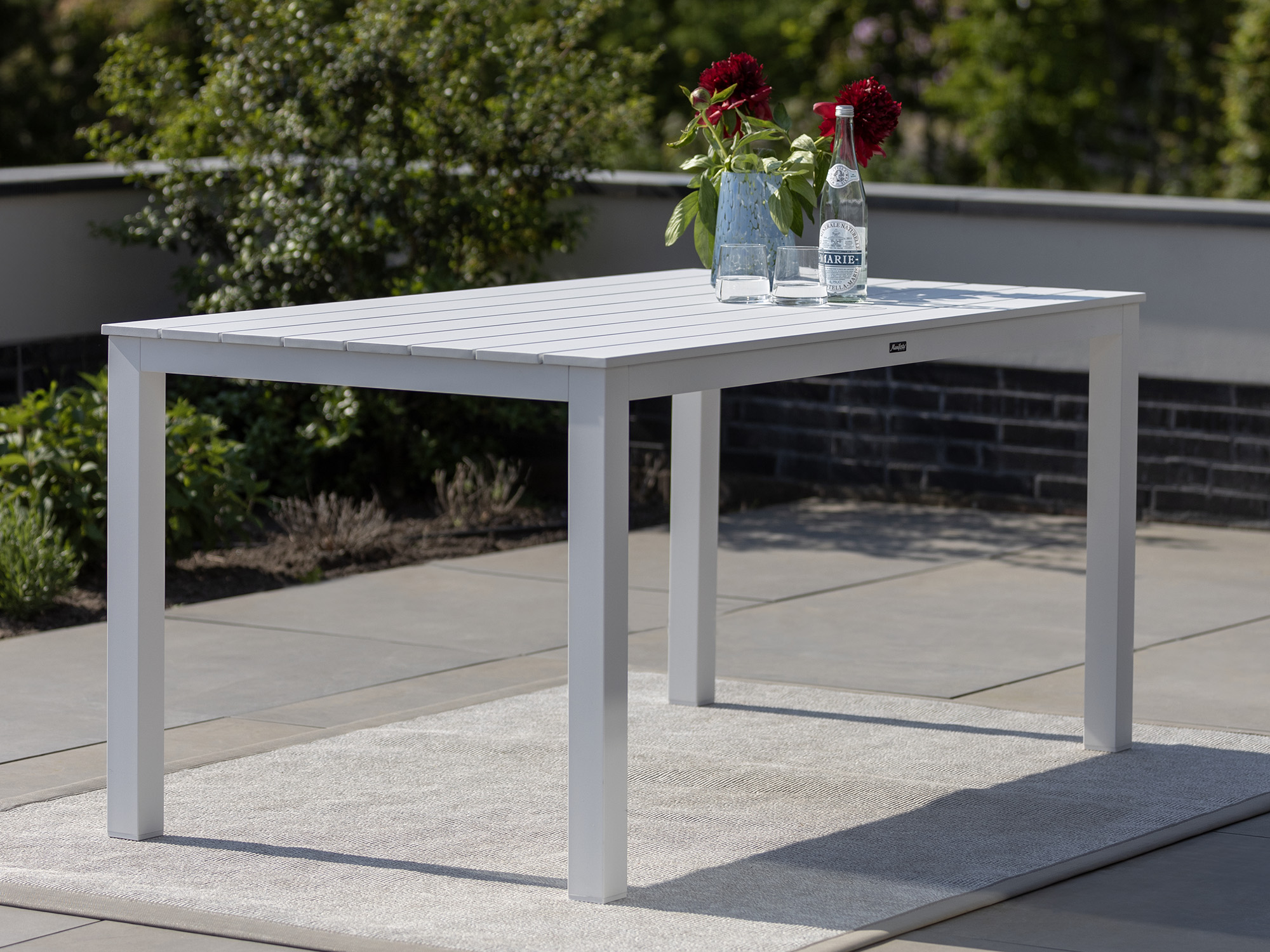 • Aluminium tafel en frame: Het aluminium is licht van gewicht en kan niet doorroesten, waardoor je de set makkelijk verplaatst en het hele seizoen buiten kunt laten staan.