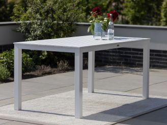 • 220 cm rechthoekige tafel: Aan deze lange tafel kun je met 6 personen ruim zitten, met genoeg plek voor grote schalen, drankjes en een spelletje na het eten.